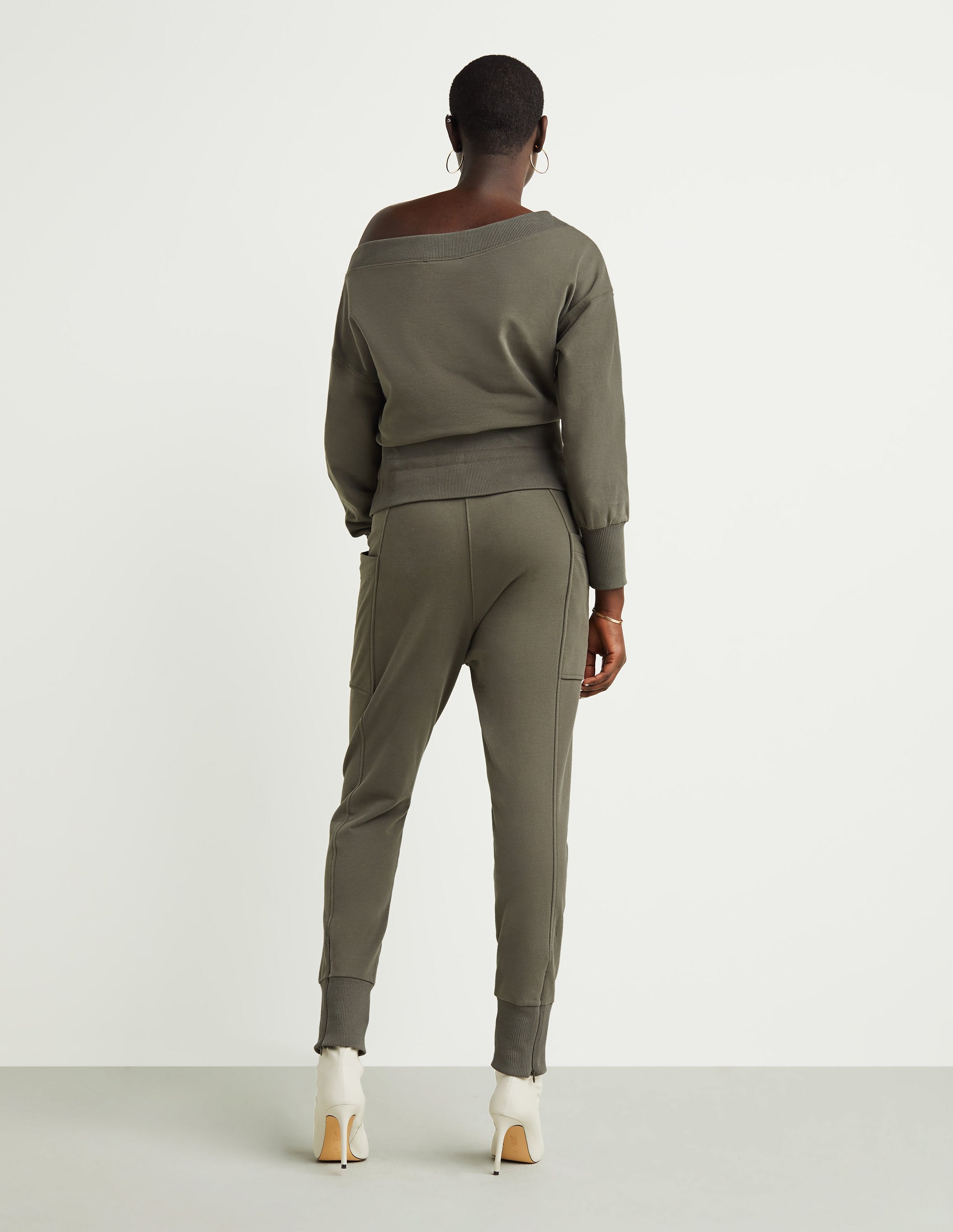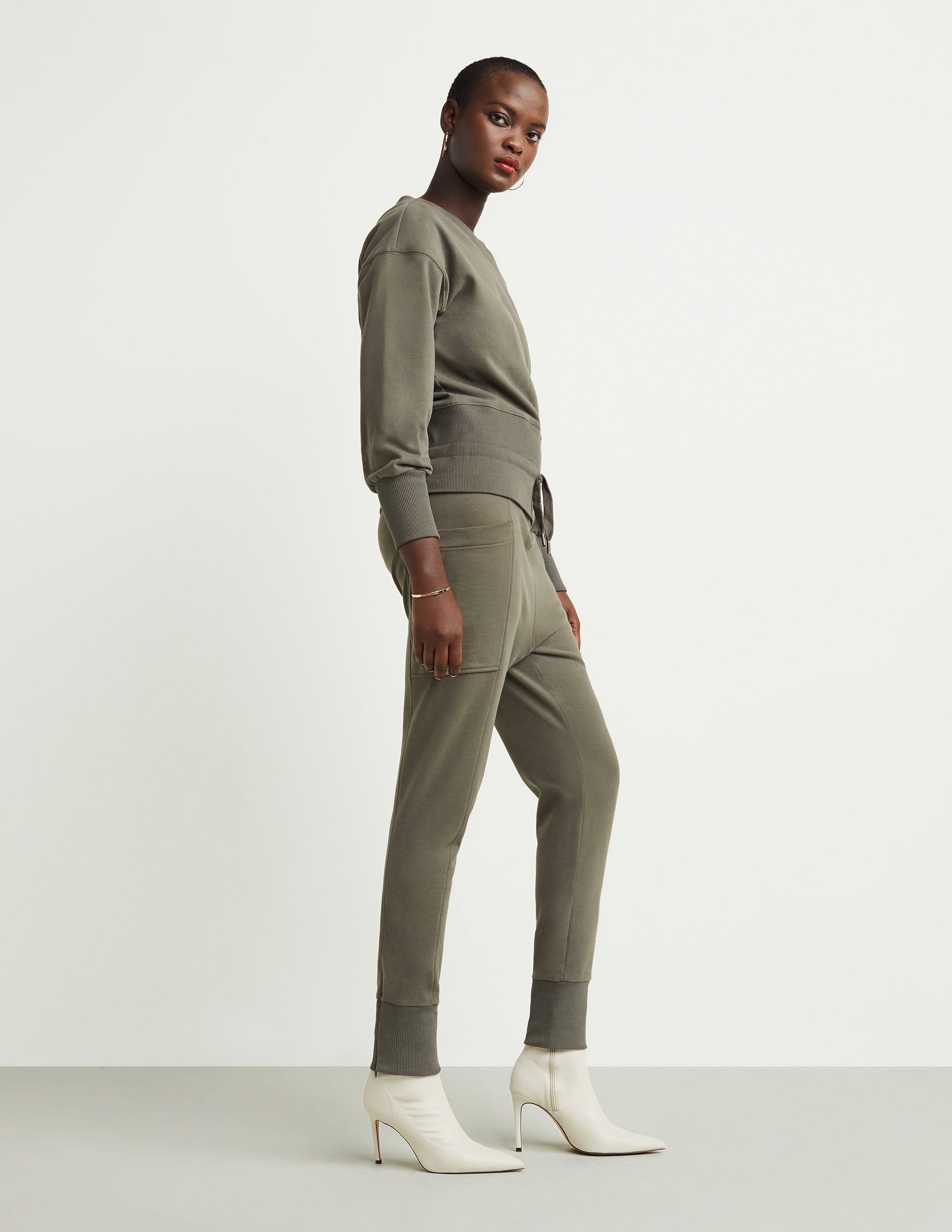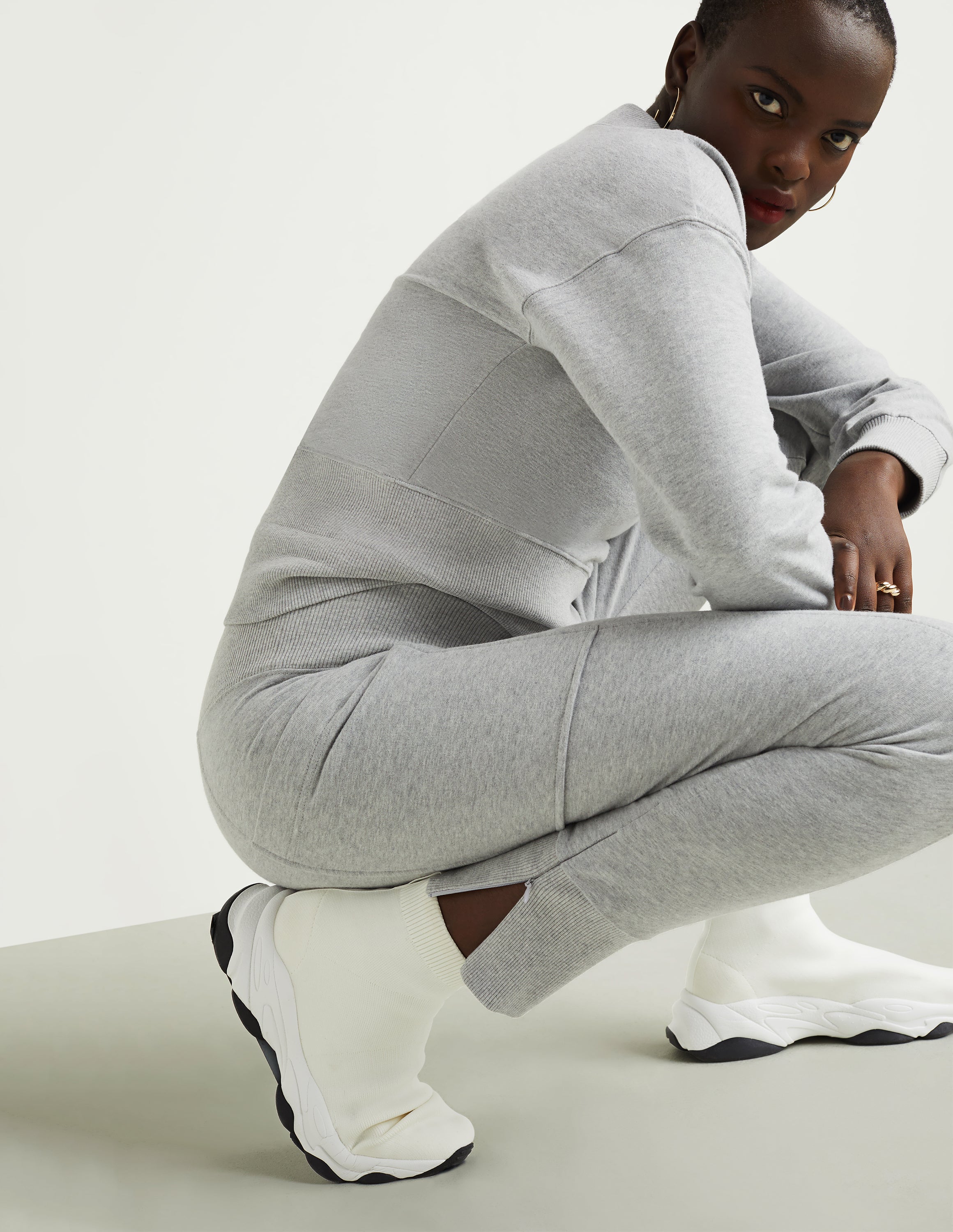 We’re big advocates of not staying in your lane. Case in point: Classic sweatpants now have made their way uptown. Refined elements—such as front seams, side-patch pockets, and tall ankle cuffs—usher these joggers into more pulled-together territory. A wide-ribbed waist offers not only comfort and contouring, but the option to wear the pant high- or low-waisted.
