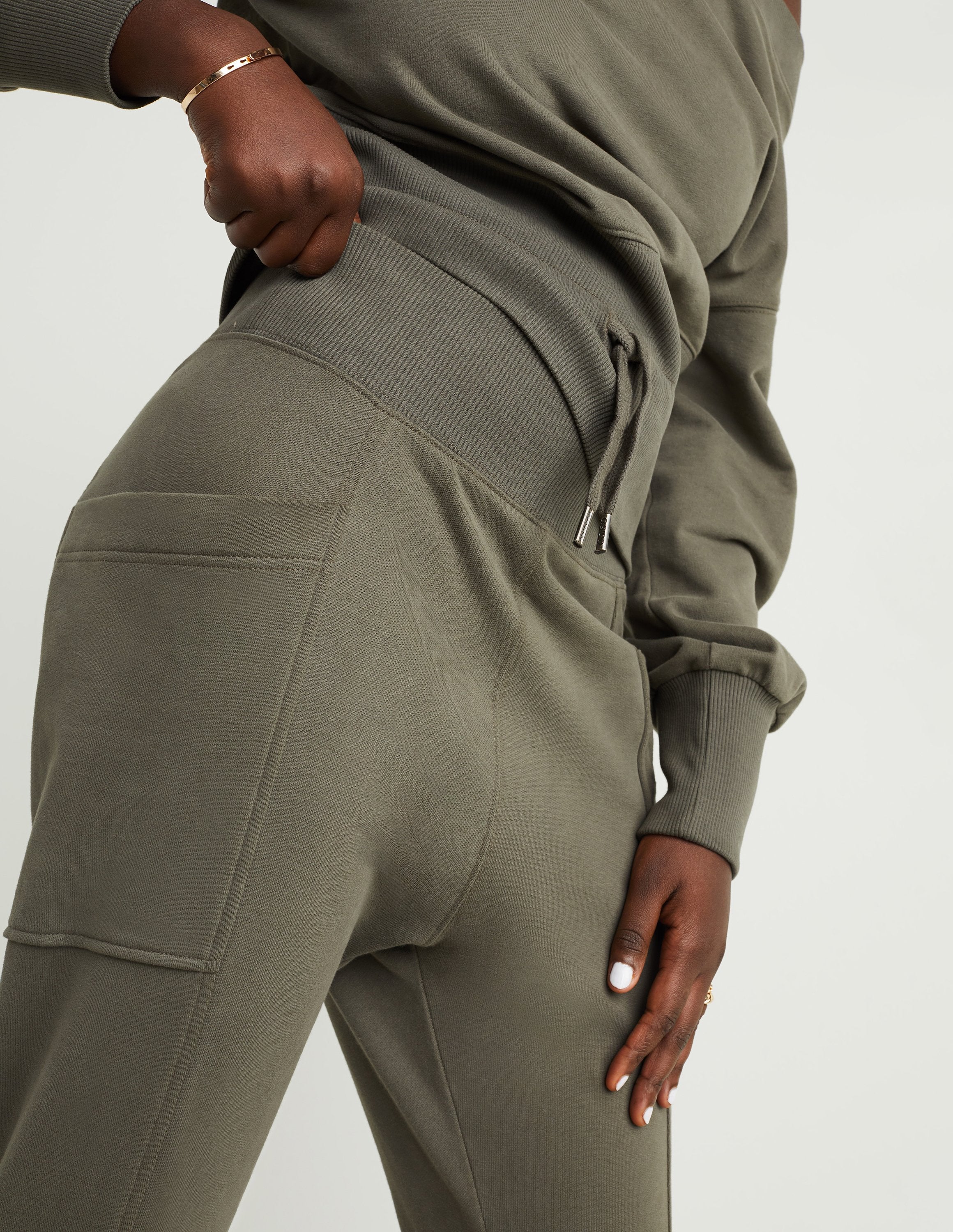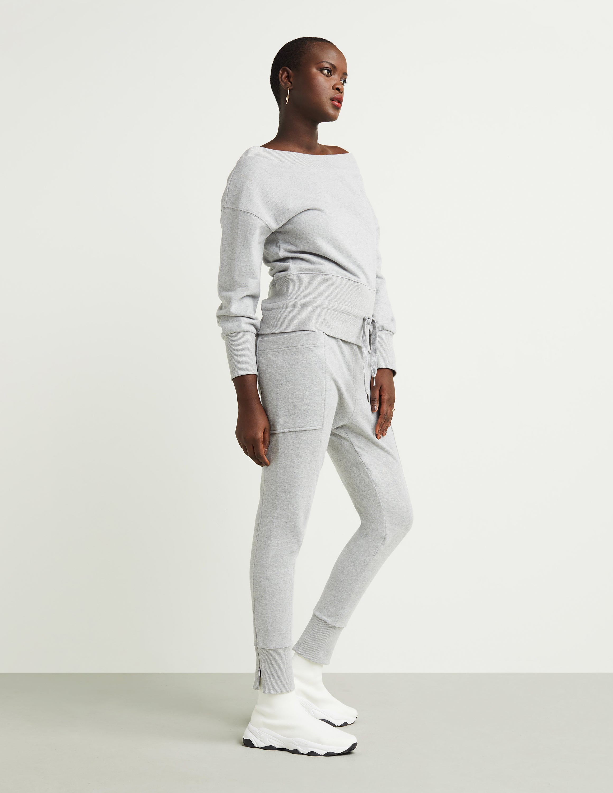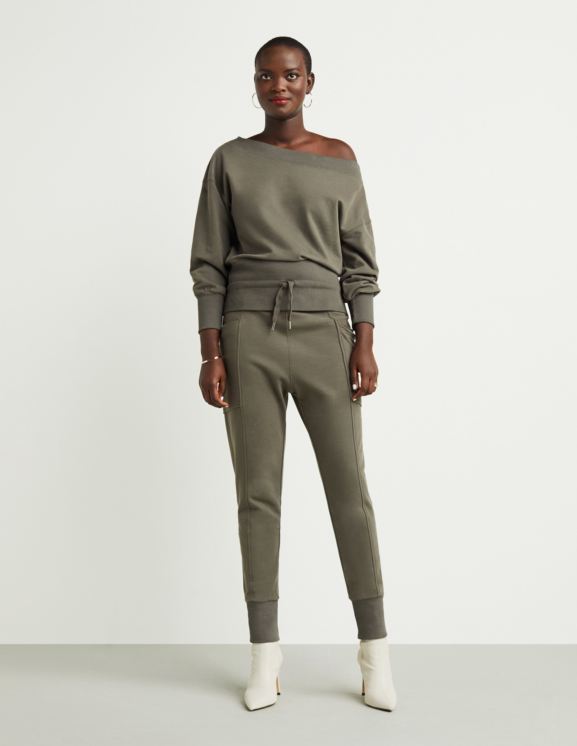 We’re big advocates of not staying in your lane. Case in point: Classic sweatpants now have made their way uptown. Refined elements—such as front seams, side-patch pockets, and tall ankle cuffs—usher these joggers into more pulled-together territory. A wide-ribbed waist offers not only comfort and contouring, but the option to wear the pant high- or low-waisted.