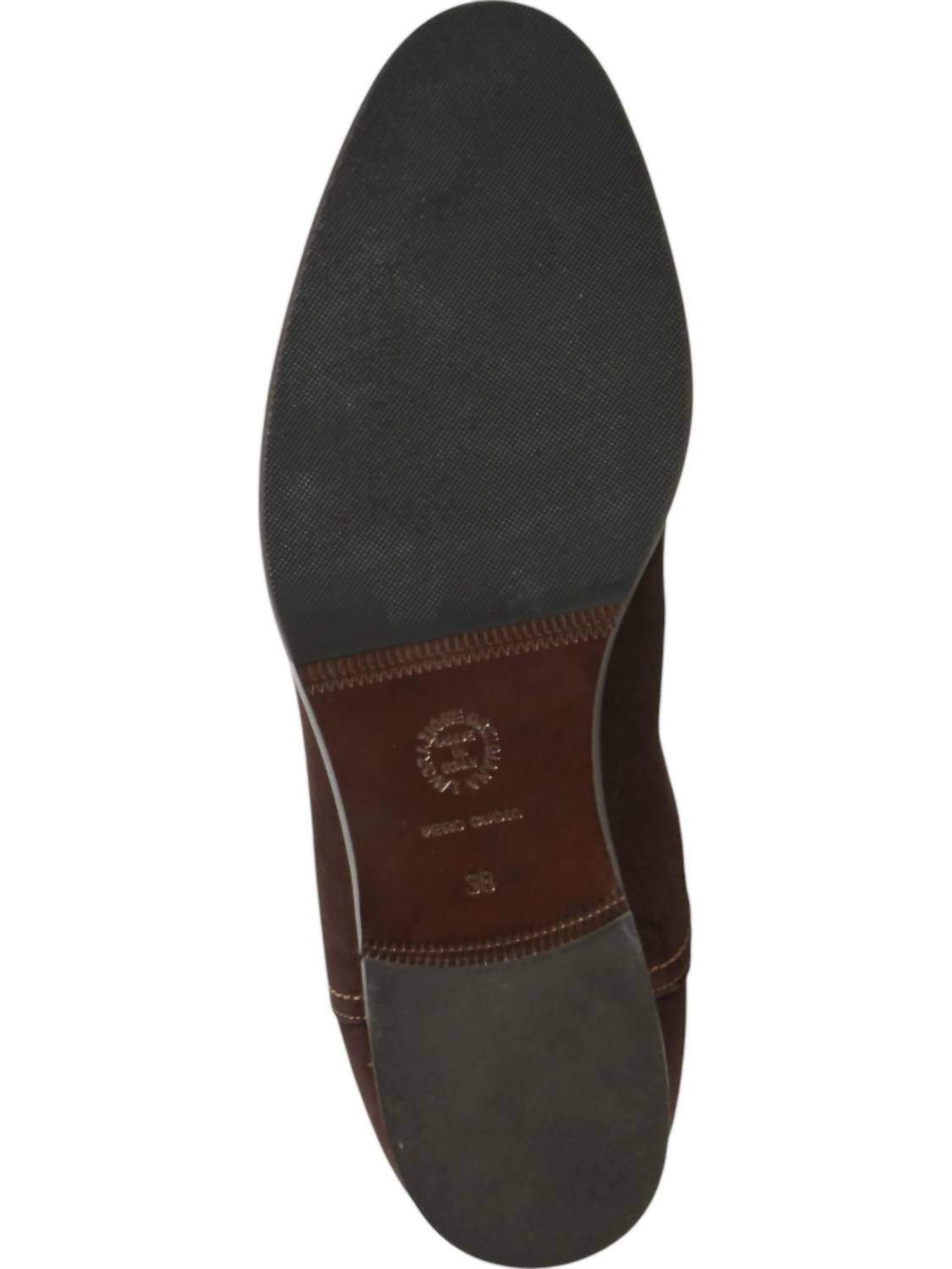 These over the knee boots are equal parts classic and cool. Experience luxury and comfort in chocolate suede. Italian-made over-the-knee boots. Feature a stretchy 16 3/4" shaft and 13" narrow calf circumference. Crafted from supple leather with a round toe and cushioned footbed. Ensures a glove-like fit, complemented by a low block heel for subtle elevation. Leather upper and lining with a leather and rubber sole.