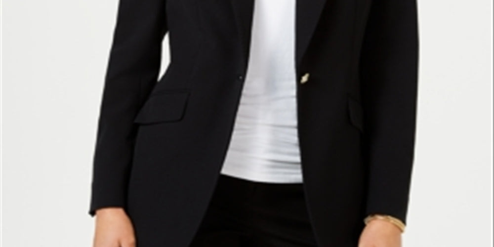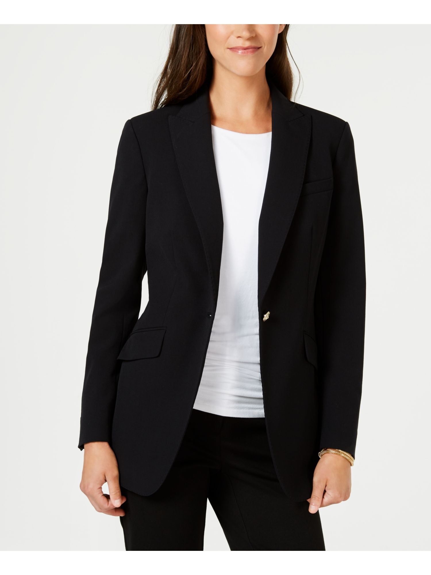 Anne Klein Women's Button Long Peak Lapel Jacket Black Size 14