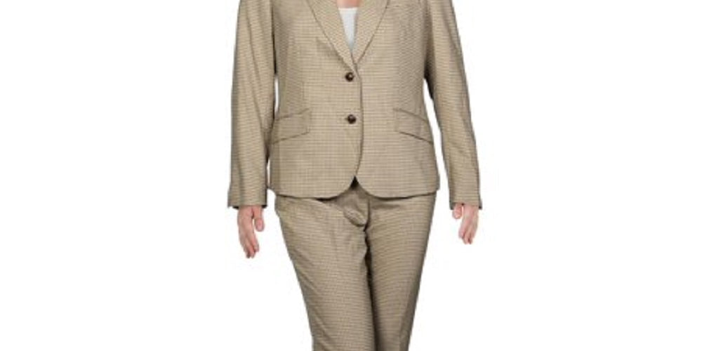 Anne Klein Women's Check Print Business Pant Suit Beige khaki Size 6