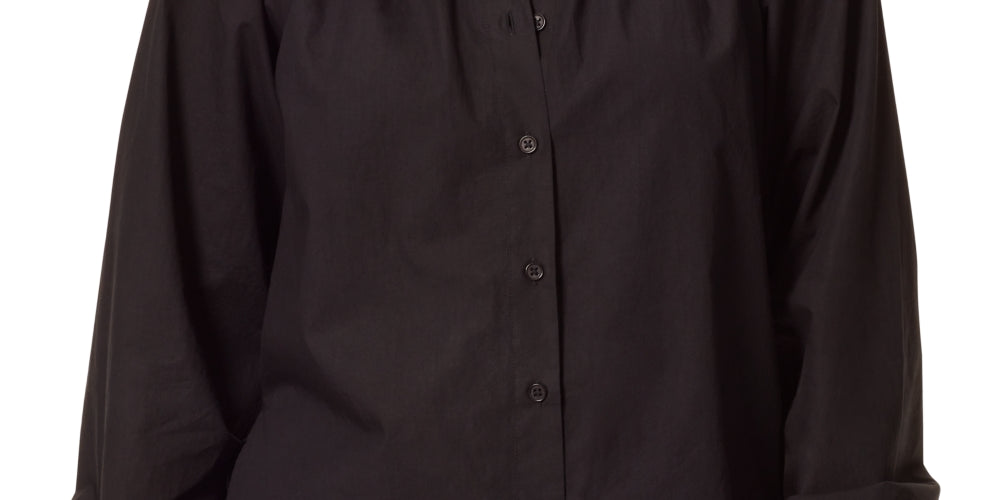 Anne Klein Women's Jo Poplin Ruffle Collar Blouse Black Size Small