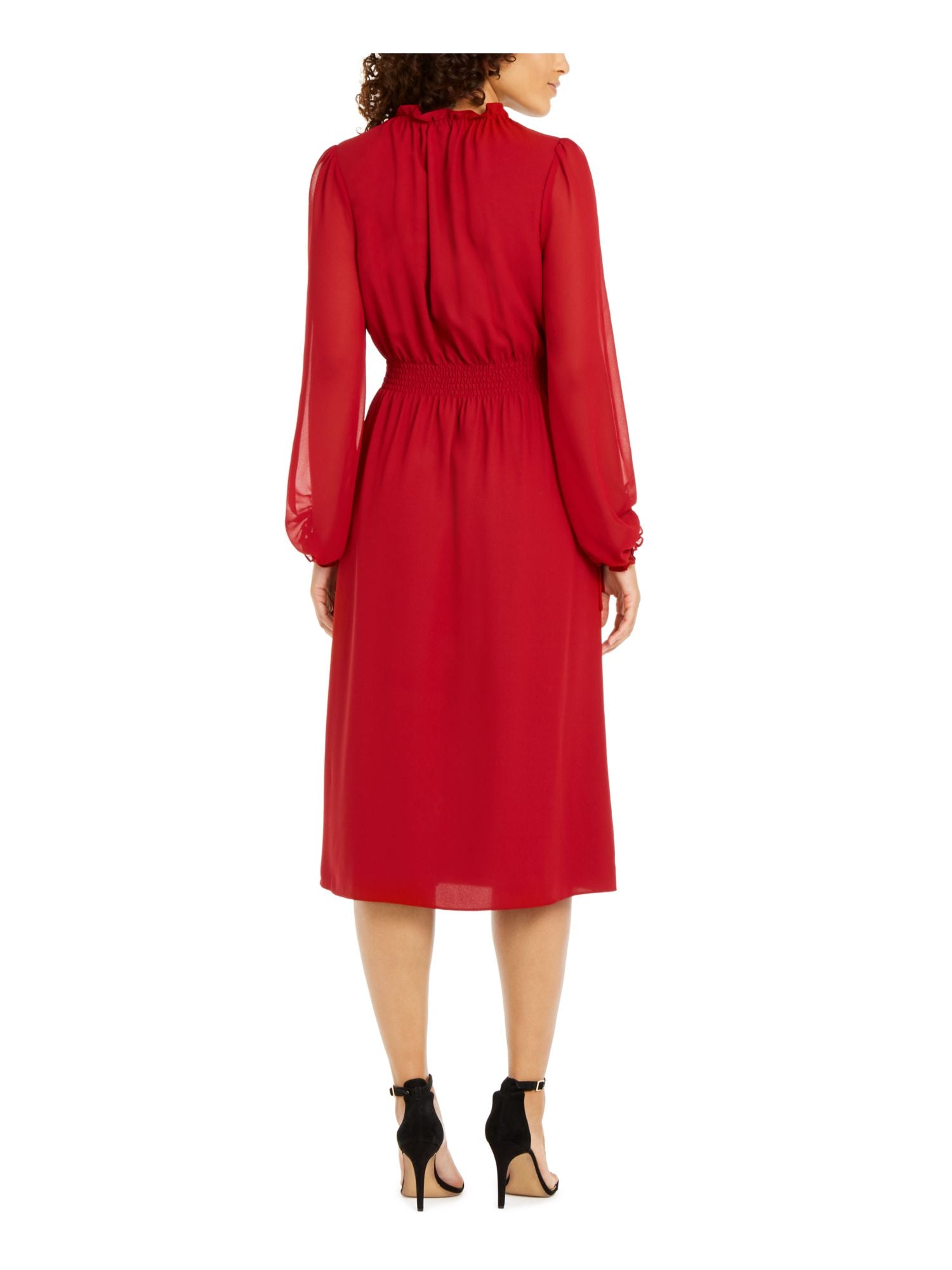 Anne Klein Women's Smocked Waist Midi Dress Red Size Medium