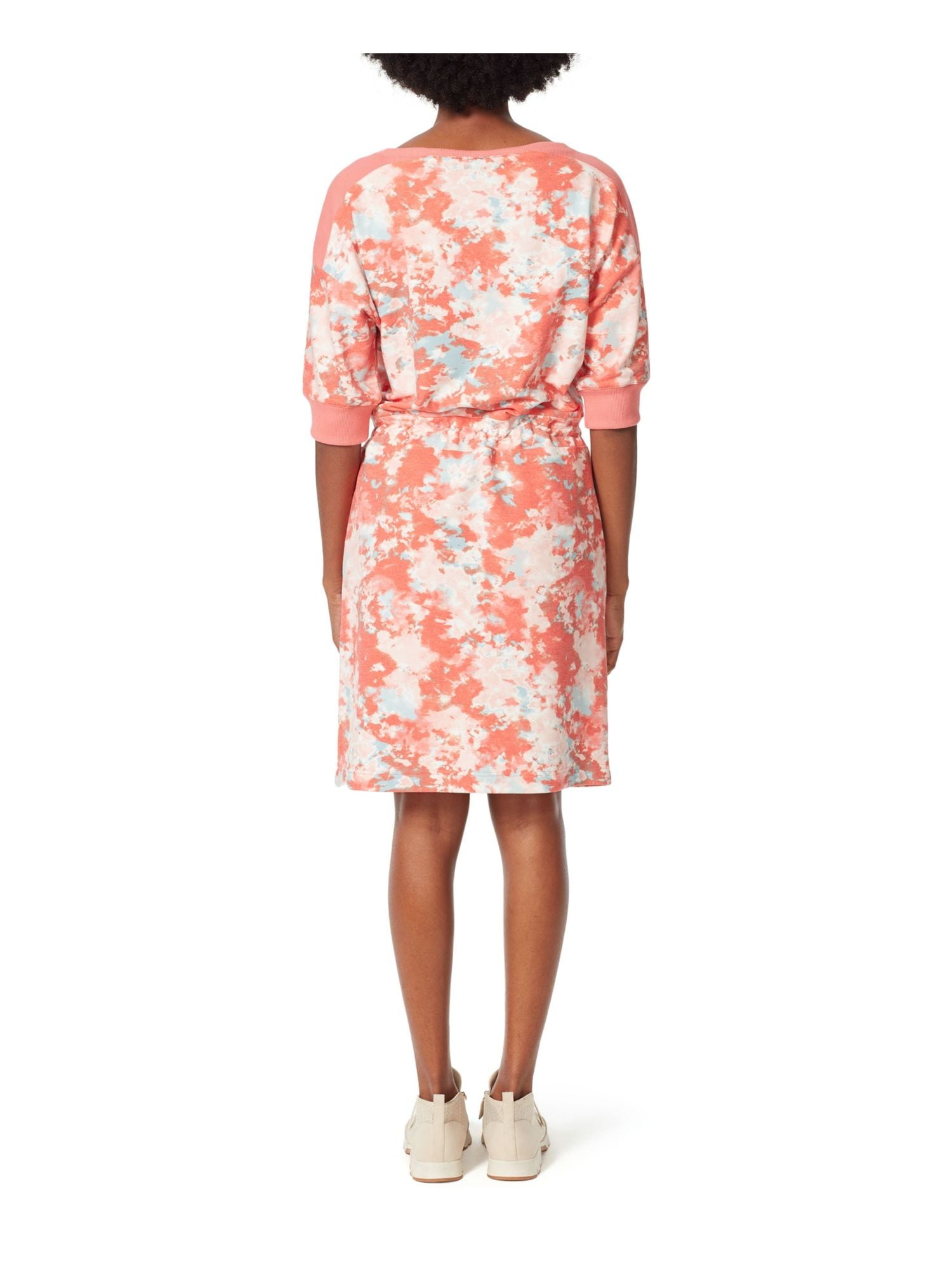 Anne Klein Women's Stretch Pocketed Drawstring Waist Ribbed Trim Printed Elbow Sleeve Boat Neck Knee Length Sweatshirt Dress Red Size Large