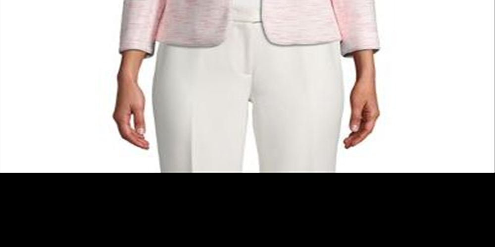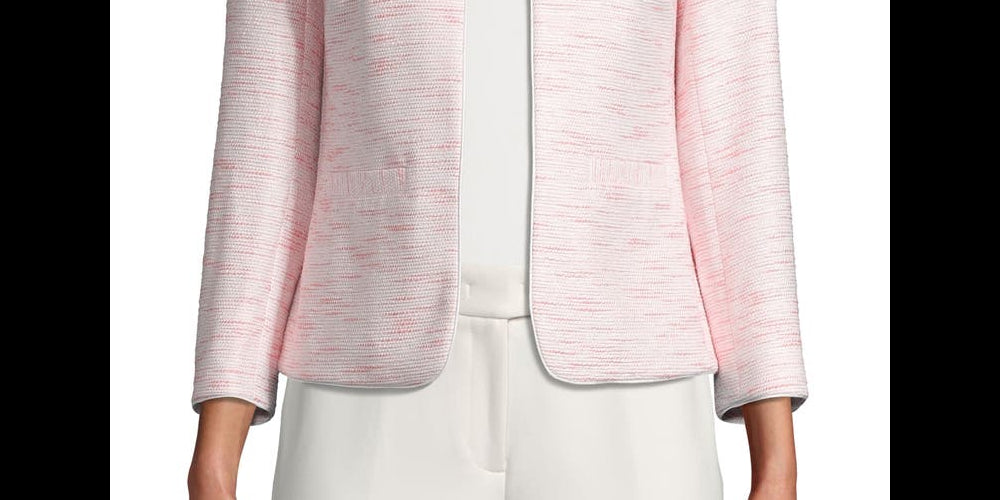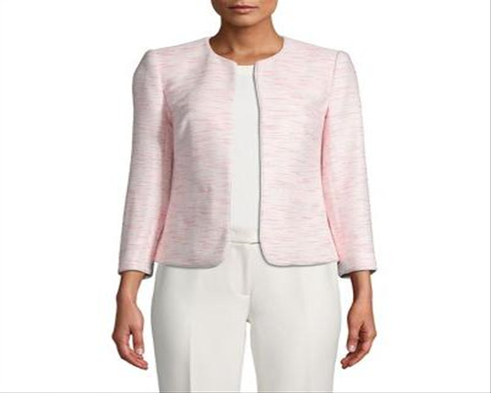 Anne Klein Women's Tweed Open Front Collarless Blazer Pink Size 4