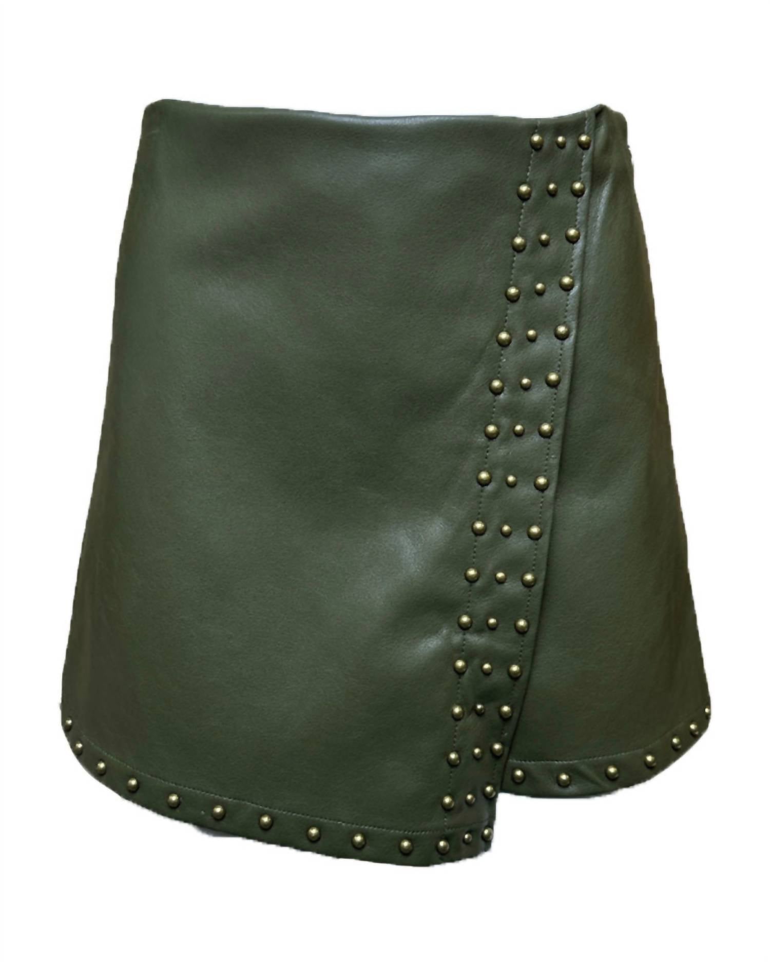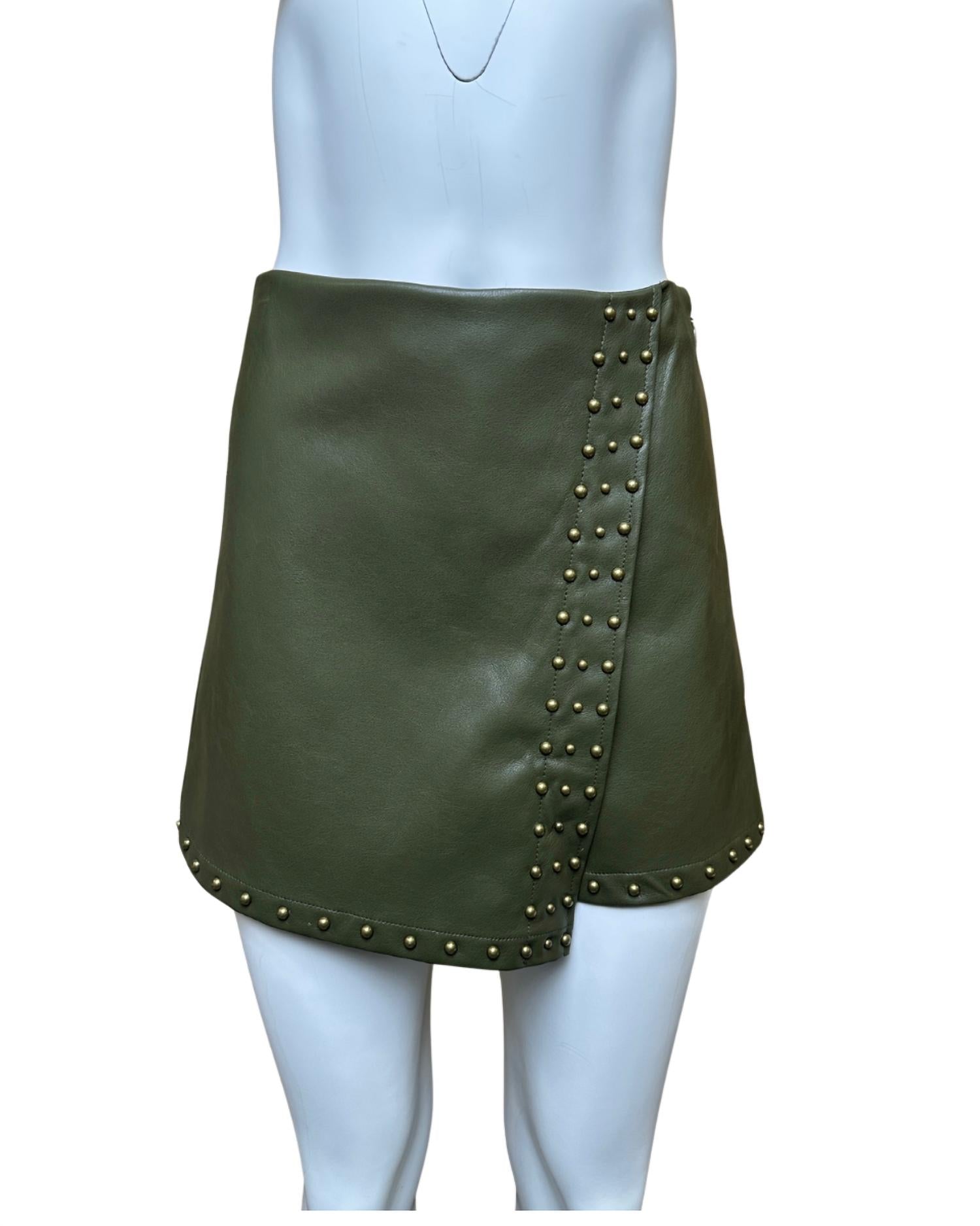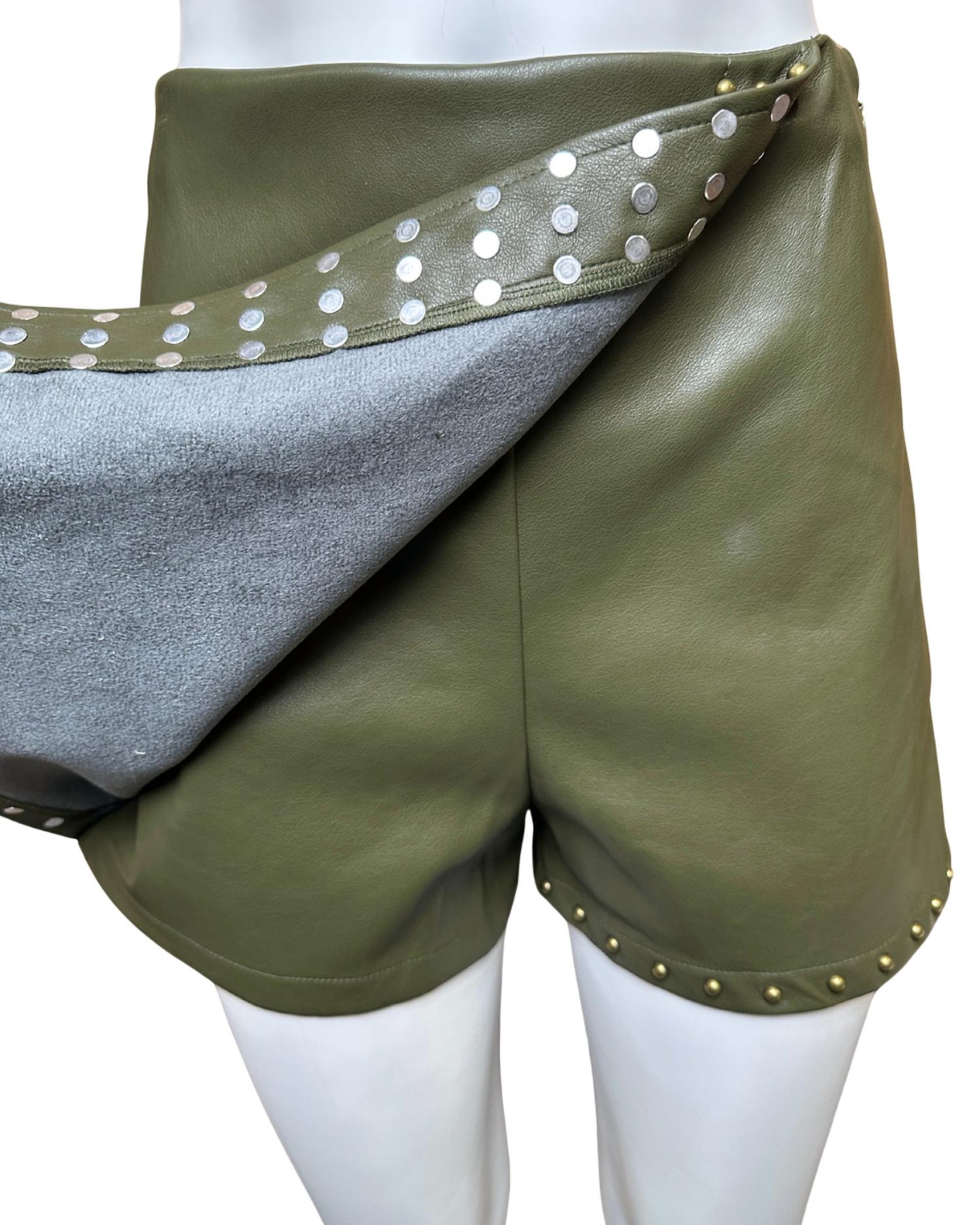 Anniewear - Women's Studded Stretch Faux Leather Wrap Skort