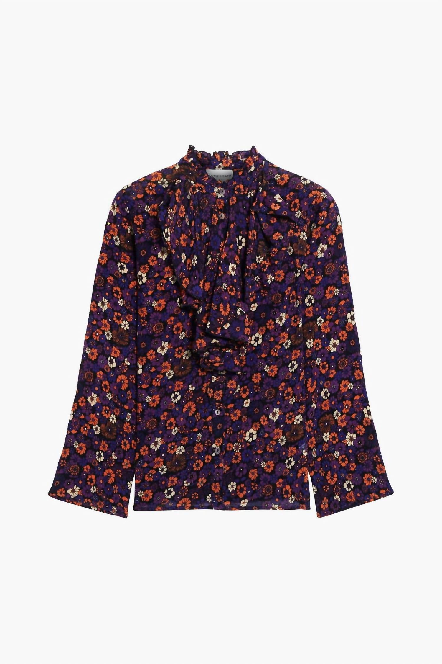 This floral-print cotton shirt features ruffled trims and bell cuffs for a feminine, elegant touch. Designed with button fastenings down the front, it is crafted from non-stretchy, mid-weight fabric. Made from 100% cotton, it offers comfort, breathability, and a structured feel.