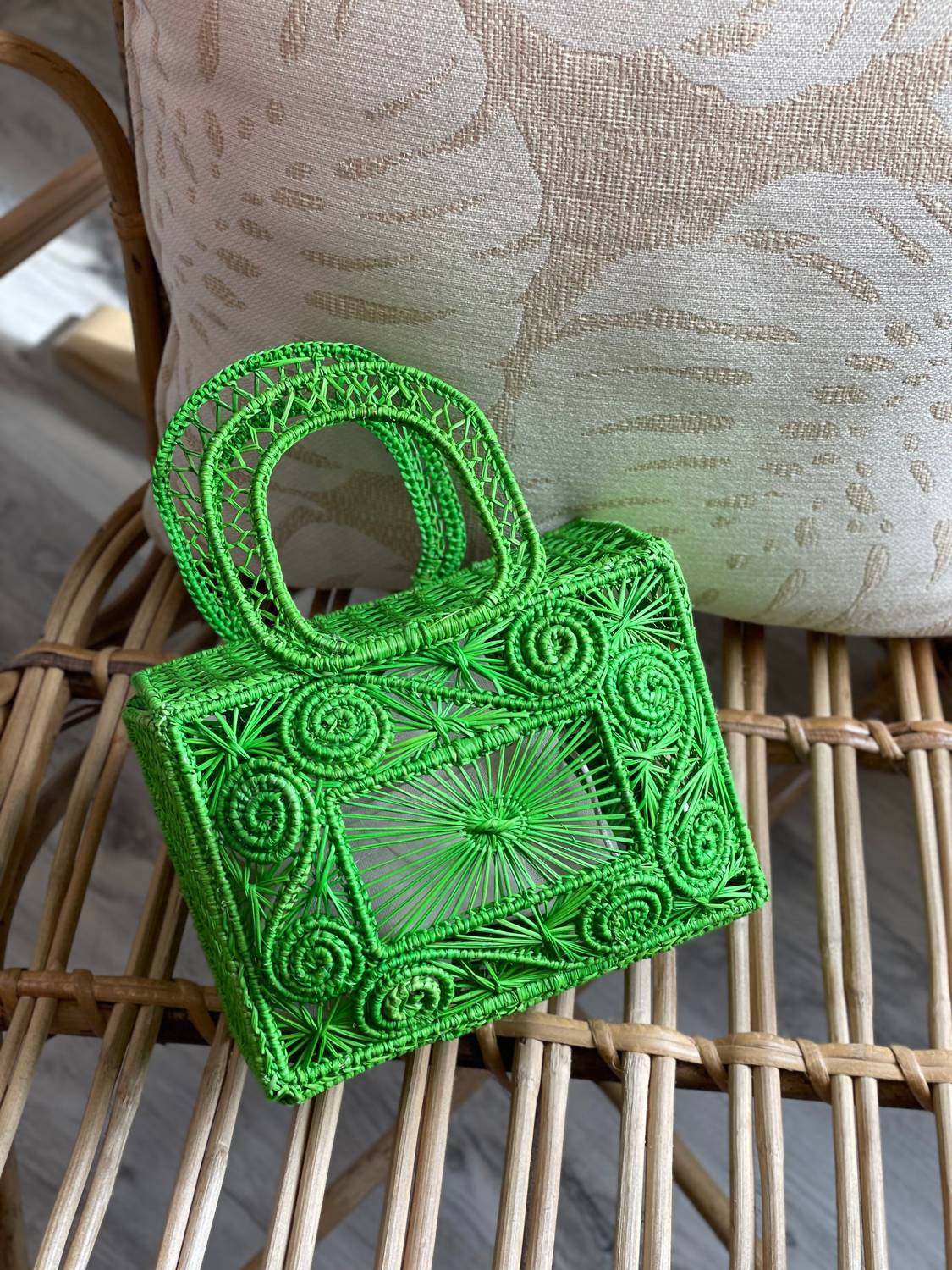 Now trending: Mini bags! Discover the Women's Cofre Bag by Apaya, a chic accessory in a vibrant green that effortlessly transitions from beach days to black-tie summer events. Expertly handmade in Colombia, this mini bag boasts a composition of 100% Iraca Palm, ensuring an eco-friendly choice with timeless appeal. It features a comfortable handle and a secure closure to keep your belongings safe. Inside, find a small pouch perfect for discreetly storing personal items.