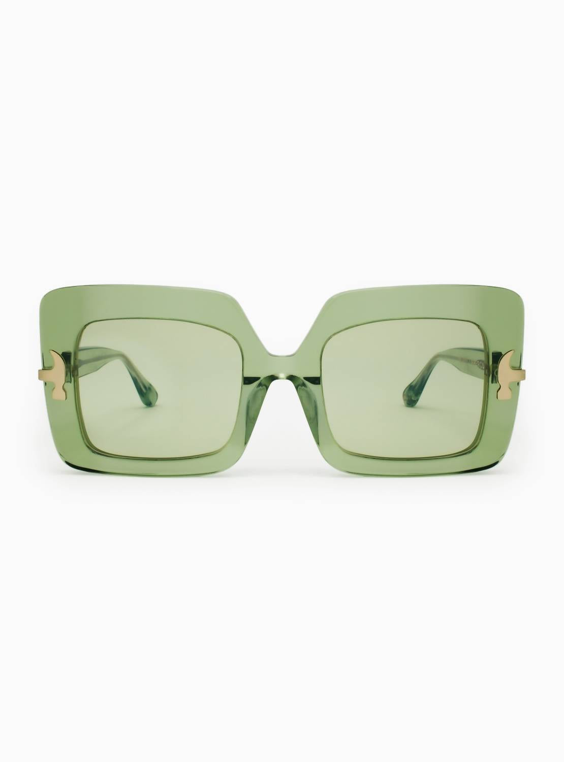 Blending fashion and practicality, these stylish shades are chic and mandatory. Stand out from the crowd and safeguard your vision with these stand-out sunglasses. Introducing the Women's Quann 02 Sunglasses by Aperçu Eyewear, a bold and glamorous accessory inspired by the 70s. These oversized square sunglasses in a vibrant Kiwi hue feature stylish metal details at the hinge for a modern twist. Perfect for making a fashion statement, this unique pair is designed to turn heads and protect your eyes with flair. Ideal for those who wish to showcase their vibrant personality and love for retro-inspired fashion.