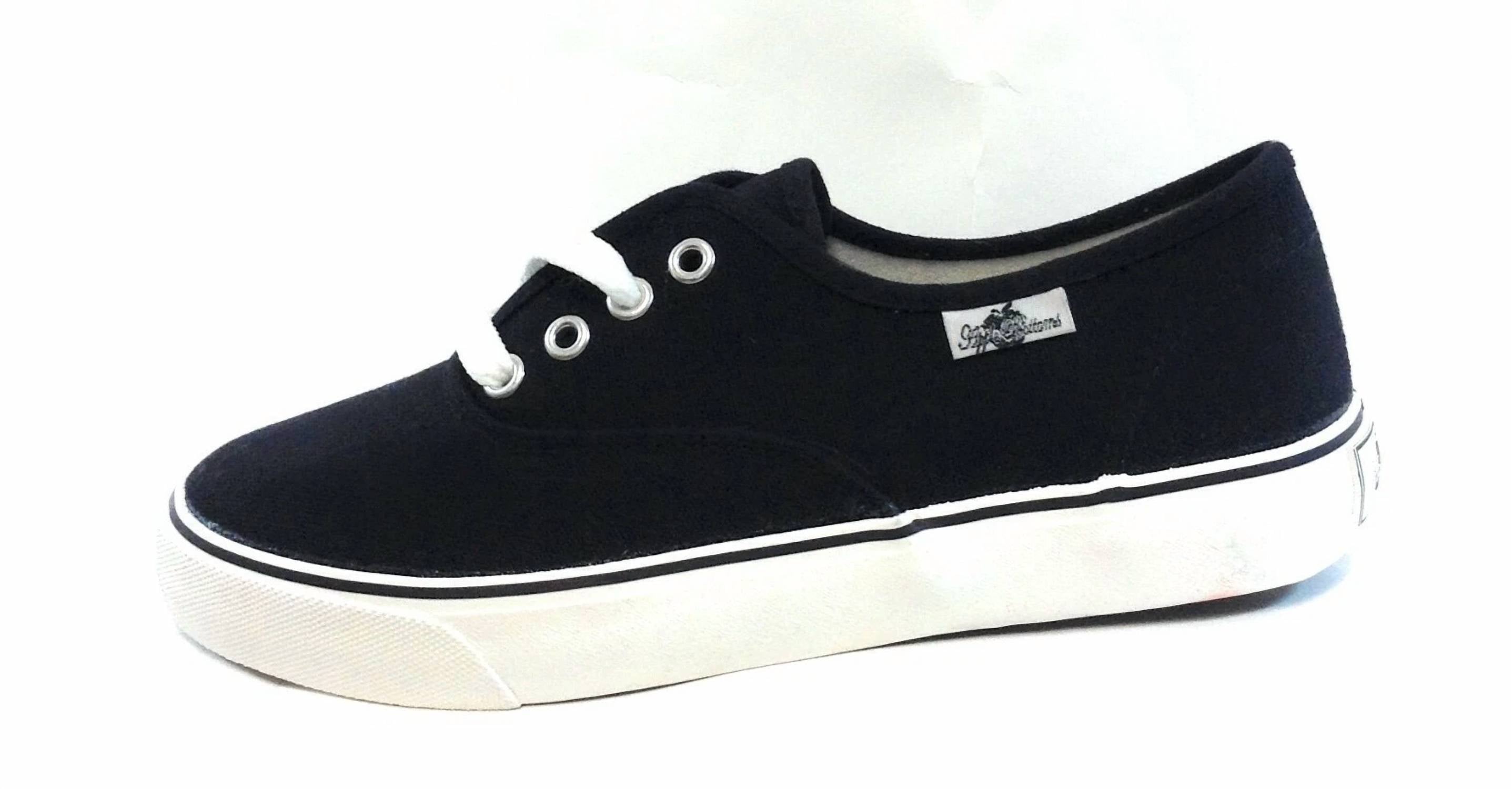 When fashion and function come together seamlessly. Introducing the Women's Ocean Canvas Sneakers by Apple Bottoms, designed for casual style and everyday comfort. These sneakers feature canvas uppers in a sleek black with white trim, offering a timeless appeal. With a flat heel standing at 1" and a round toe shape, they're an ideal choice for all-day wear.