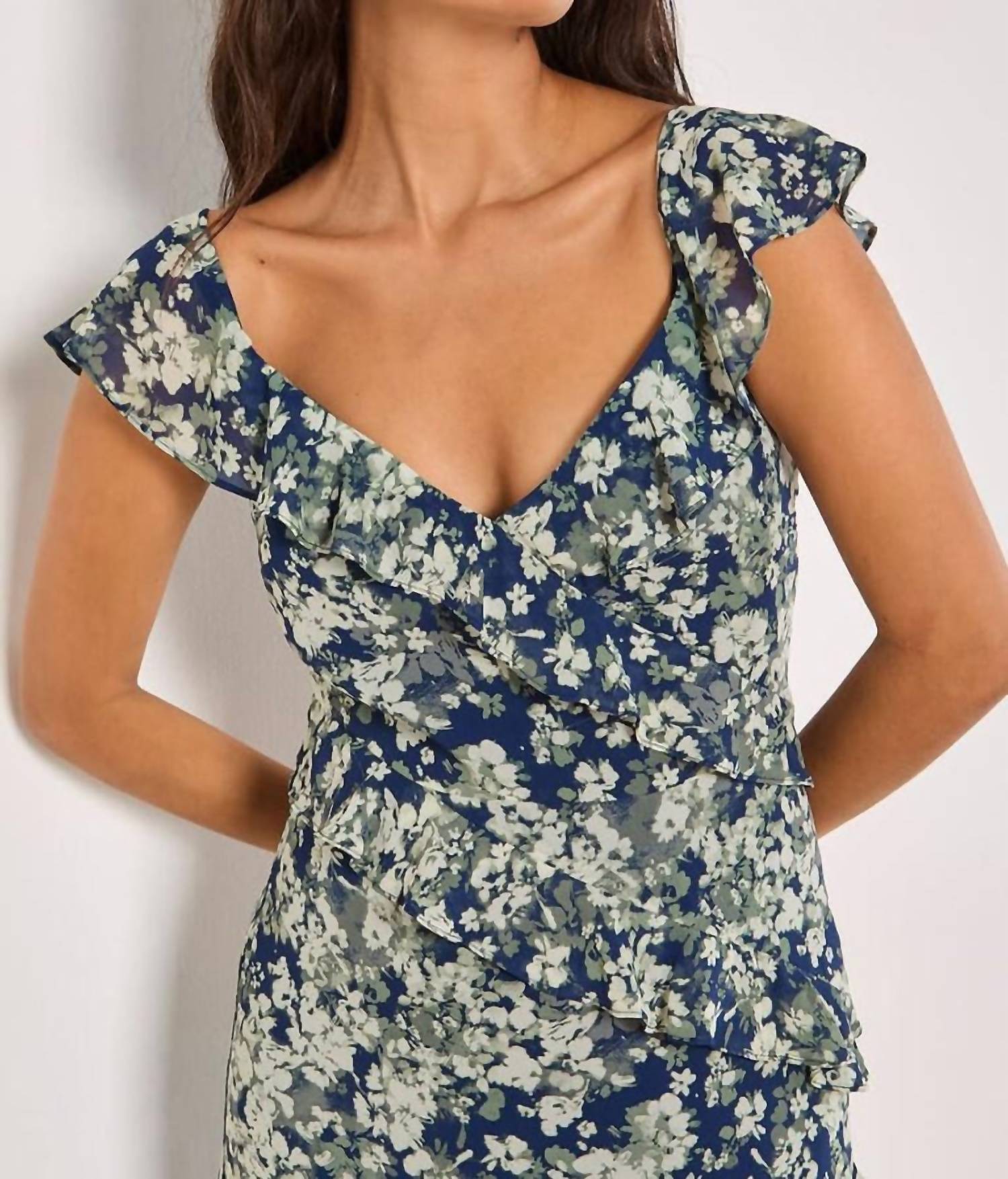 The perfect length dress does exist. Elevate your wardrobe with the Valeria Midi Dress by APRICOT, a chic choice in navy featuring ruffle cap sleeves and a graceful scoop neckline. This sheath silhouette dress is crafted from 100% polyester, offering a flattering floral print that celebrates boho chic style. Designed for comfort and elegance, it includes a side zipper closure and is lined for a polished finish. Made under fair conditions in Vietnam, this versatile piece can be machine washed on a gentle wool cycle and requires no bleach or tumble drying.