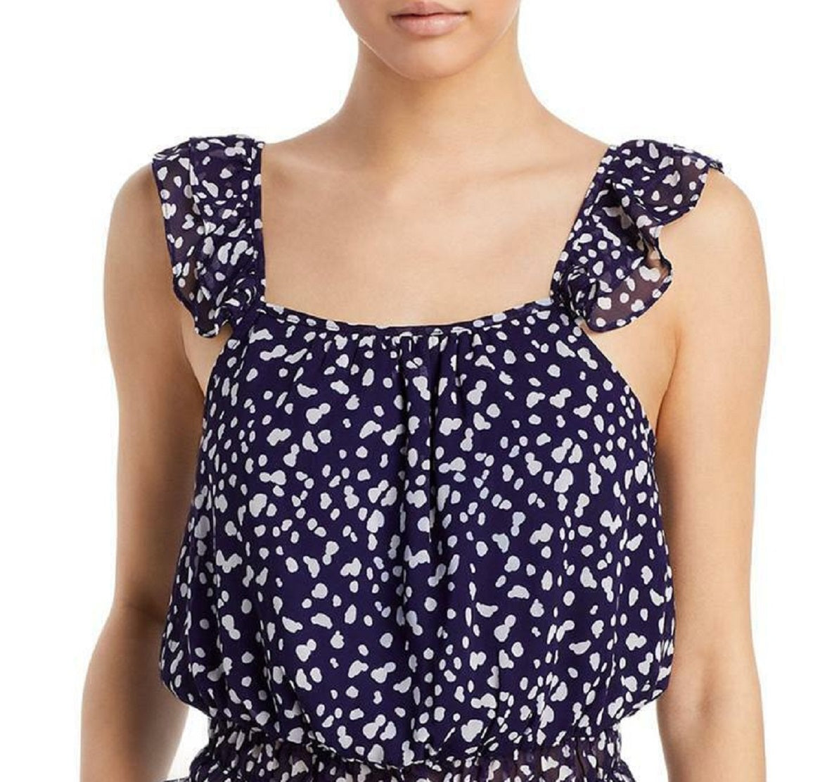 Aqua Women's Abstract Dot Ruffle Top Blue Size Small