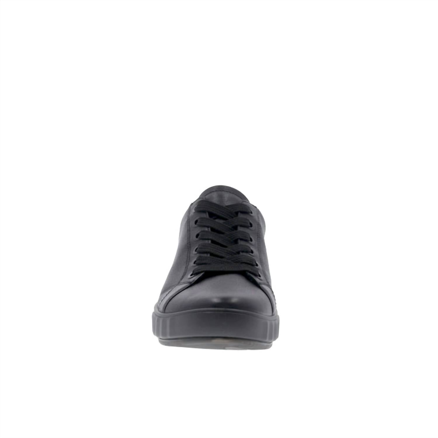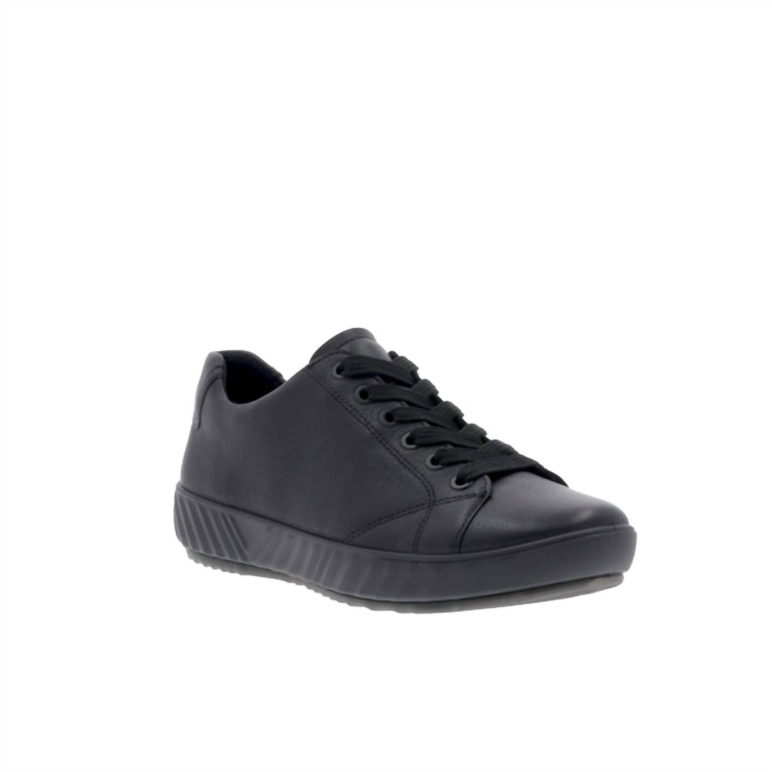 Discover the Women's Alexandria Sneaker by Ara, your versatile companion for any occasion. Made from sleek, all-black leather, these sneakers offer ultimate comfort with a soft bamboo terry cloth lining and a removable footbed that provides heel stability, arch, and metatarsal support. The sneakers feature a flat heel under 1 inch and a round toe shape, perfect for streetwear, summer, and vacation travel. Embrace style and comfort effortlessly in these must-have sneakers.