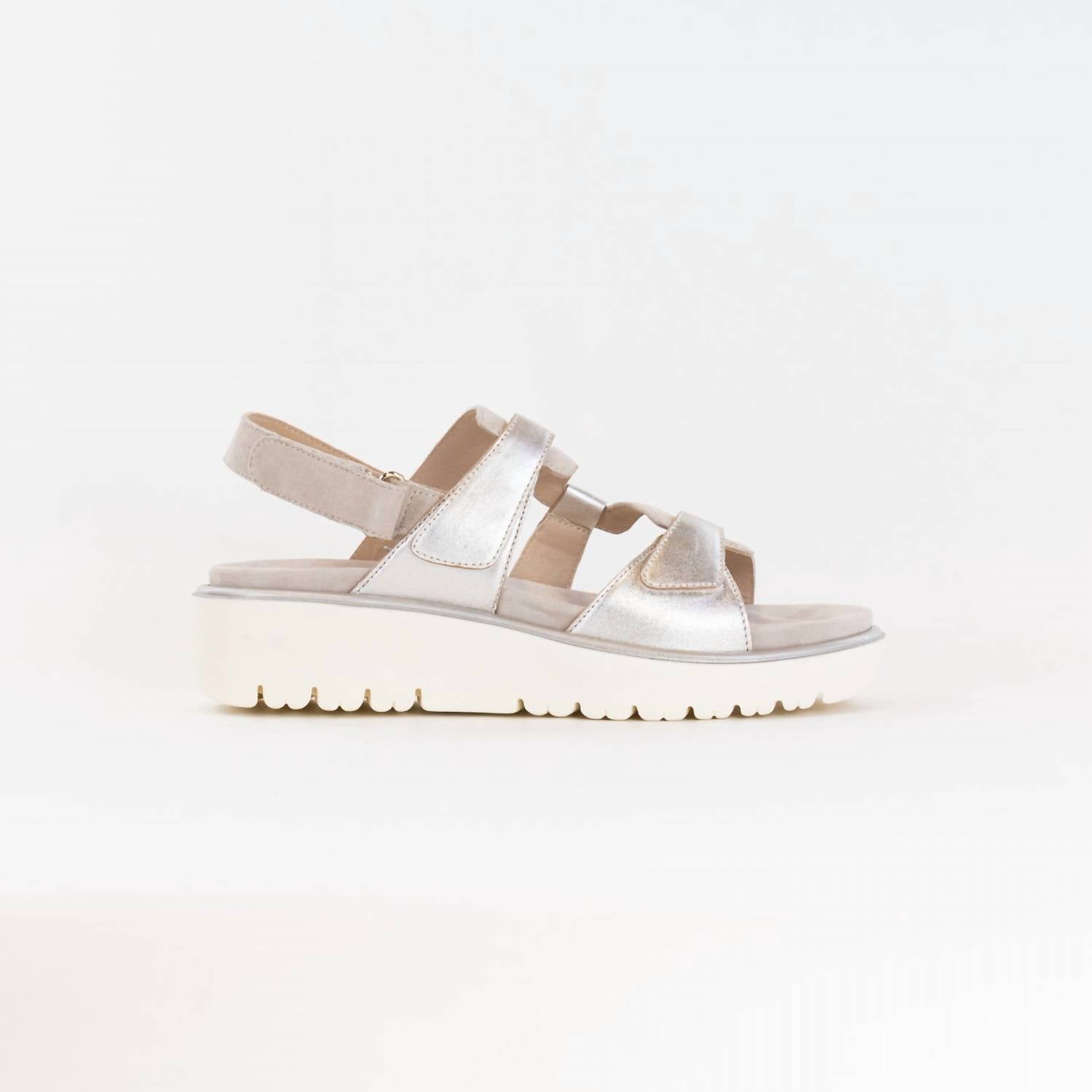 This sandal will take you from brunch to dinner and everything in between. Step into summer style with the Ara Women's Bayview Sandal in a chic platinum/sand color combination. Crafted with premium leather, these sandals feature HighSoft Technology that integrates super soft uppers, a highly flexible outsole, and a supple, padded insole for ultimate comfort. The open toe design and 1.75-inch wedge heel make them perfect for a vacation-ready look. Available in European sizes 36-43 and a medium-wide fitting, the Bayview Sandal ensures both comfort and style for any minimalist summer occasion.