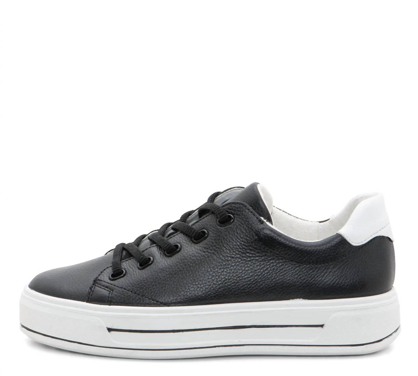 Get your daily steps in with these adorable sneakers. The Women's Crystal Elastic Lace Platform Cupsole Sneaker by Ara is your go-to for comfort and minimalist style. This sneaker, offered in chic color, features Leather construction with a textile lining and synthetic sole, incorporating Ara's HighSoft technology for outstanding comfort. Elastic laces allow for effortless pull-on wear, while a padded collar and foam cushioning enhance your walking experience. Imported and perfect for Spring travel, the sneaker includes a removable, cushioned insole with arch support and a flat heel of 1" or less, catering to those seeking both style and functionality.