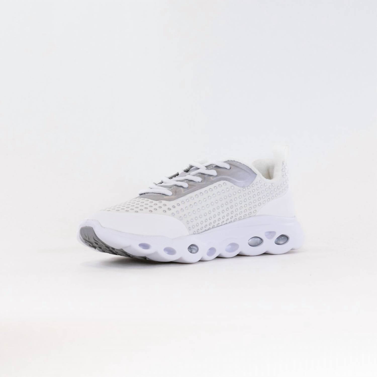 Get your daily steps in with these adorable sneakers. Introducing the Women's Montclair Memory Foam Lace Up Sneaker by Ara, a perfect blend of comfort and style for the active lifestyle. Designed in a sleek White/Silver colorway, these sneakers feature high-tech uppers focusing on breathability. They boast a bamboo terry cloth lining with natural antibacterial properties and a memory foam insole for exceptional comfort. Ideal for fitness or athleisure, the flat heel and shock absorbent sole with gel pads ensure support and cushioning for all-day wear. Perfect for those seeking functionality and modern design in sizes 6 to 11.5 (US).