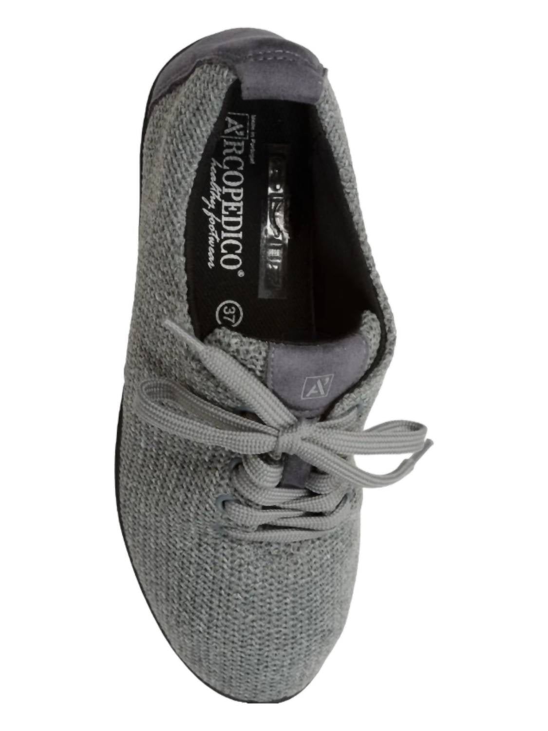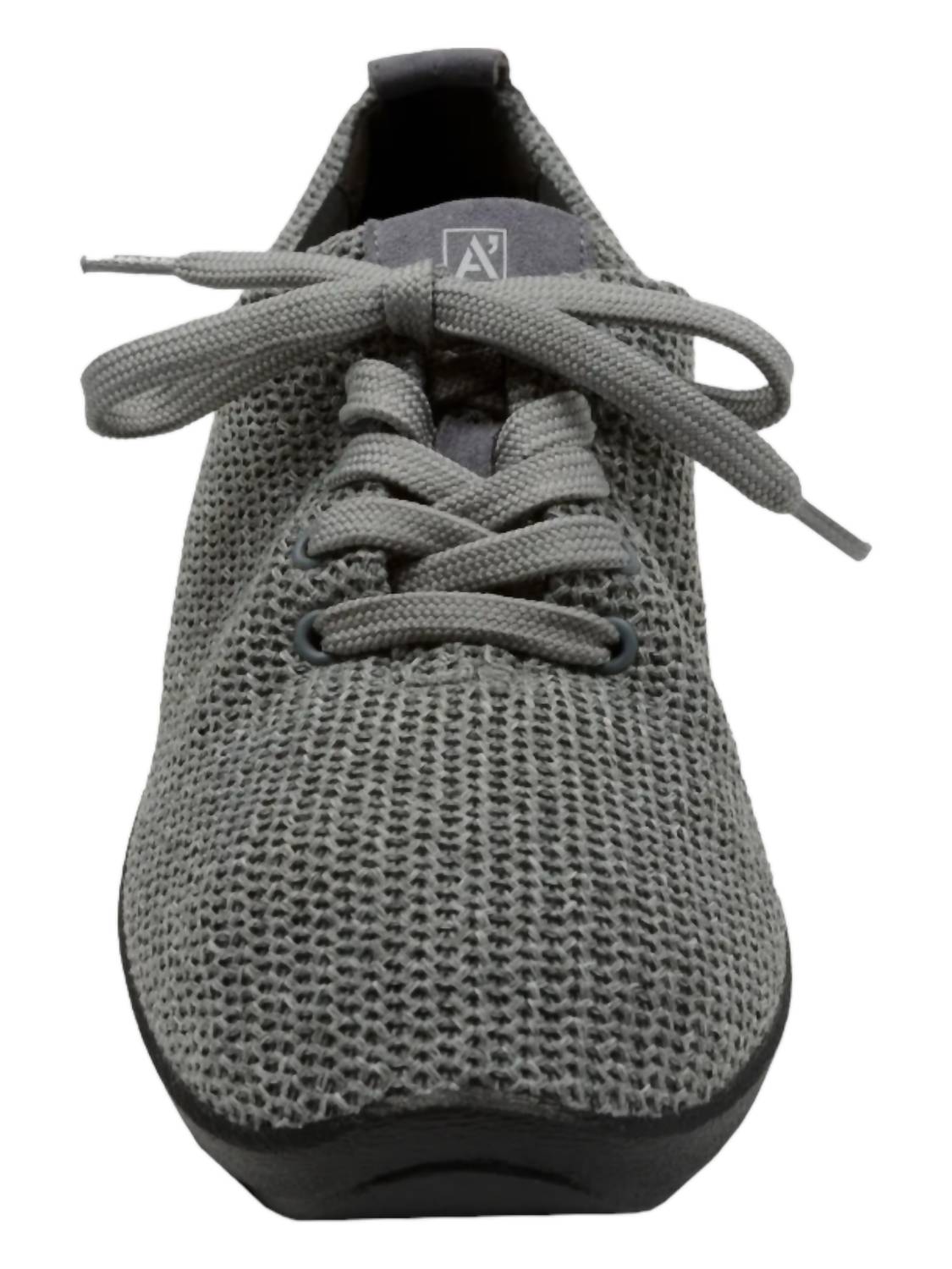 When fashion and function come together seamlessly.Sleek grey sneaker. Combines style and functionality. Crafted from stretch polyester-knit. Embraces your foot in a snug, flexible fit. Lace-up closure. Round-toe silhouette. Soft textile lining and a removable insole. Designed with arch and metatarsal support. Durable man-made outsole and machine-washable design. Heel height of 1.25 inches. Platform height of 0.5 inches.