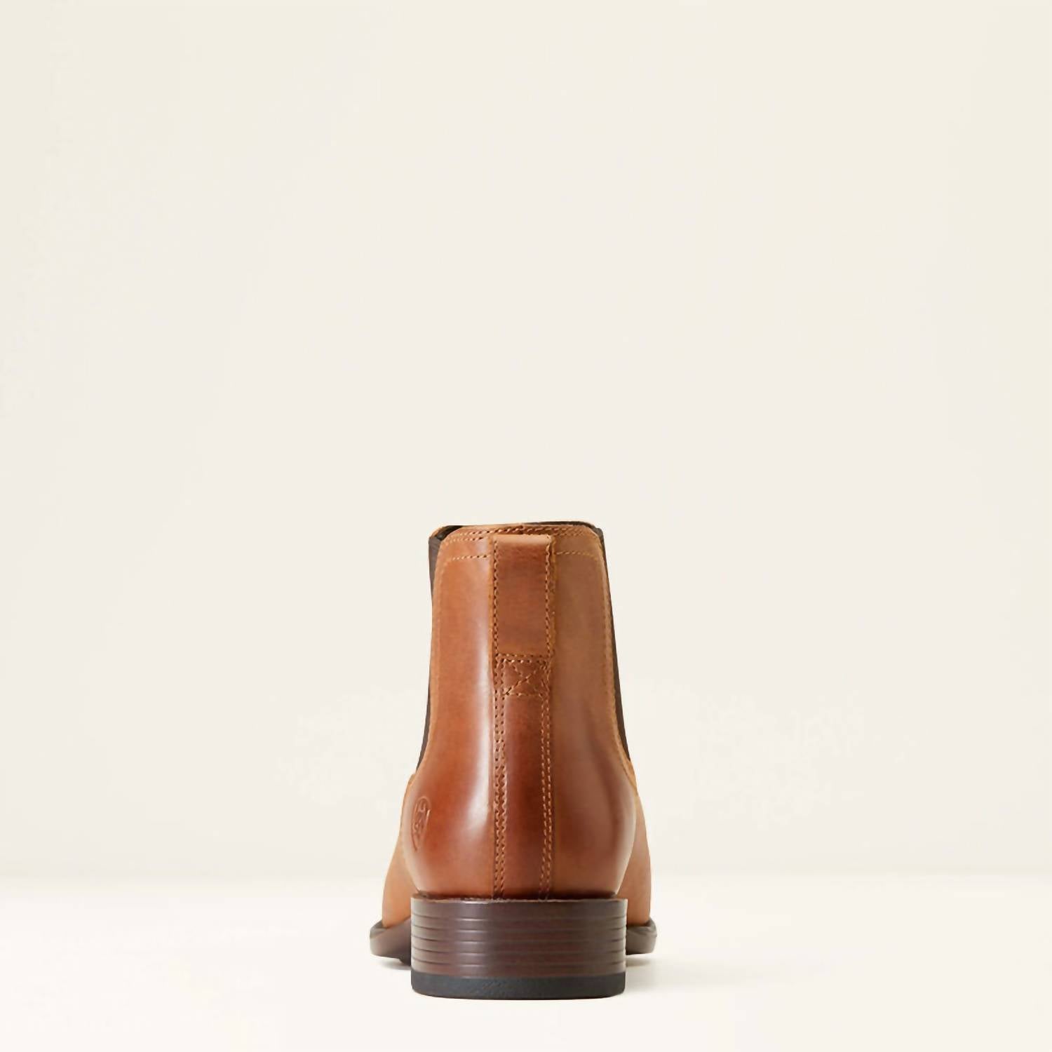 Introducing the Men's Booker Ultra Square Toe Western Boot by ARIAT, crafted in premium full-grain leather with a synthetic lining in a stylish Almond Roca color. This cowboy boot features a 6" shaft height, a distinctive square toe, and a comfortable 1.5" horseman heel, ideal for those who seek both style and ergonomic support. The boot is equipped with ATS® technology for enhanced comfort on uneven terrain and includes a removable All Day Cushioning insole for extra relief. Its Bantamweight™ sole is lightweight and provides resistance against oil and slips, reflecting ARIAT's commitment to responsible leather production from Leather Working Group-certified tanneries.