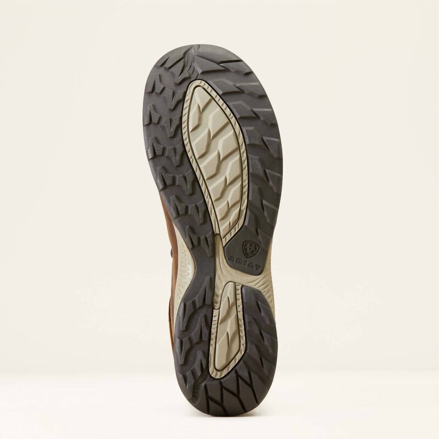 Step out in style with the ARIAT Men's Spitfire All Terrain Shoe, a must-have for the fall season. Crafted from oily distressed tan leather, these boots boast a vintage flair perfect for vacations and casual outings. Designed with a practical flat heel and featuring a comfortable round toe shape, this footwear is ideal for those who appreciate both function and fashion. Elevate your autumn look with these versatile and durable boots.