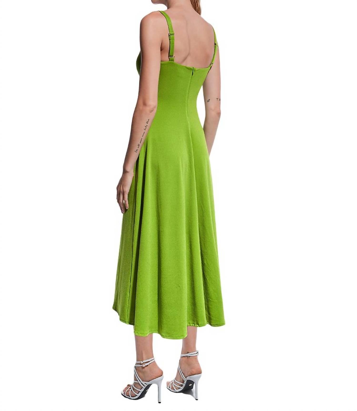 The perfect length dress does exist. Features a gathered front bodice that falls gracefully to a waterfall hem. The deep V neckline features thin straps that accent your decolletage. Adjustable straps. Center back zip closure. Model is 5'11" and wearing a US size S. True to size. Dry clean only. 95% Polyester, 5% Elastane.