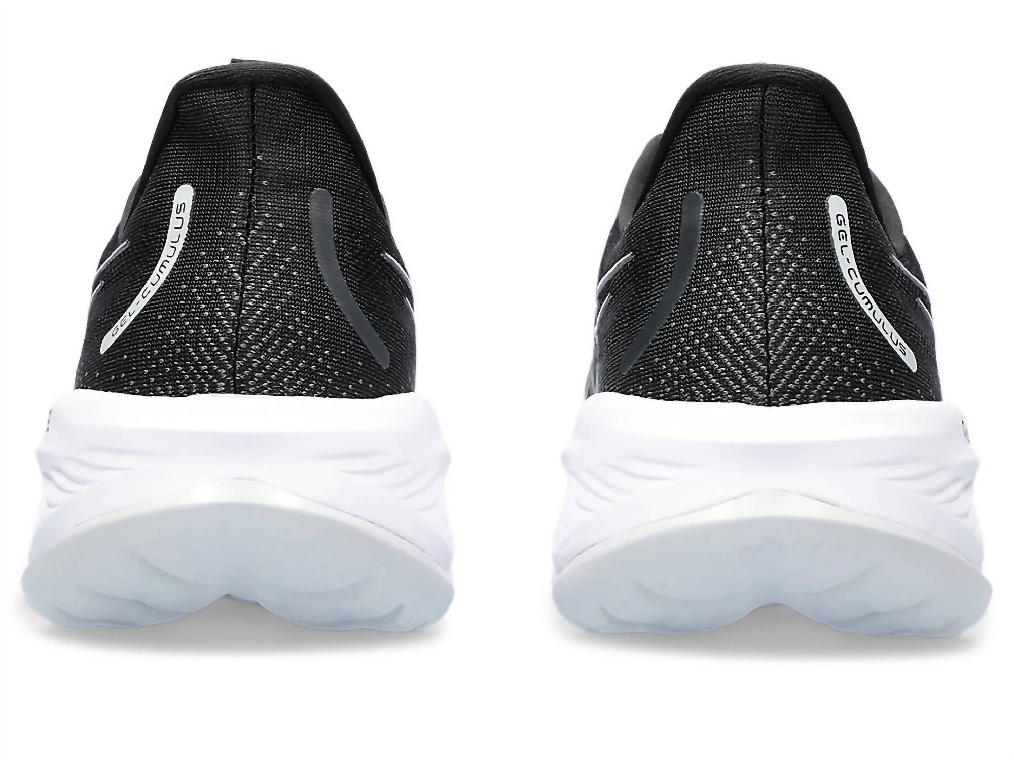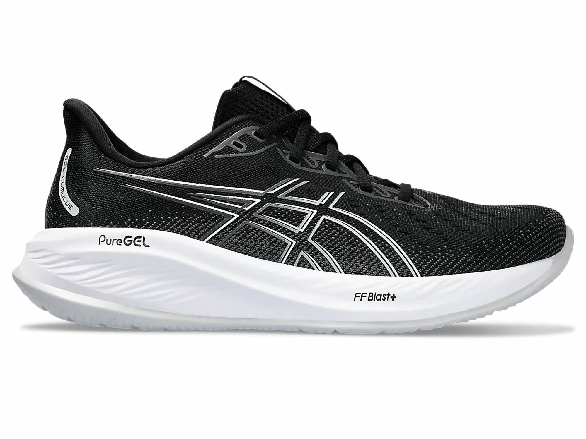 Step into a new realm of comfort with the Men's Gel-Cumulus 26 Running Shoes by ASICS, offered in a sleek Black/Concrete colorway. Crafted for road surfaces with a medium width and an 8 mm heel drop, these shoes weigh in at 255 g/9 oz and feature an engineered mesh upper for improved breathability and comfort. Enjoy advanced cushioning with the FF BLAST™ PLUS technology and PureGEL® technology that deliver lightweight impact absorption, responsive rebound, and softer landings. The shoes boast an OrthoLite™ X-30 sockliner for unparalleled soft step-in comfort, with an eco-conscious design using at least 75% recycled content in the upper material.