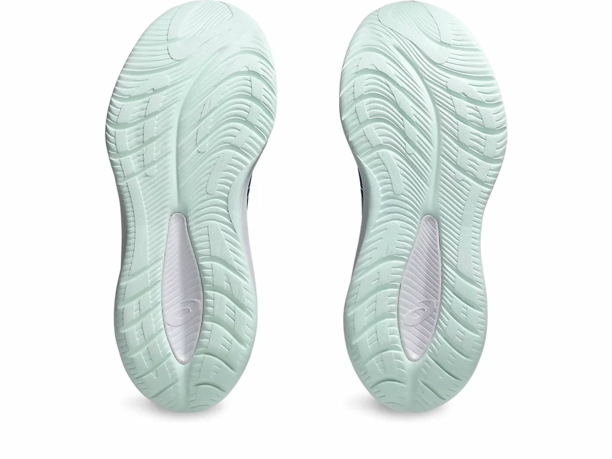 When fashion meets function. Presenting the Women's Gel-Cumulus 26 Running Shoes by ASICS, crafted in a stunning Rich Teal/Pale Mint colorway for an effortlessly chic athletic look. These shoes feature an engineered mesh upper that enhances breathability and comfort, while the FF BLAST™ PLUS and PureGEL™ technologies deliver lightweight impact absorption with softer landings. At least 75% of the upper material is made with recycled content, minimizing waste and carbon emissions. Designed with a medium width and round toe shape, these shoes also include an OrthoLite™ X-30 sockliner for soft step-in comfort.