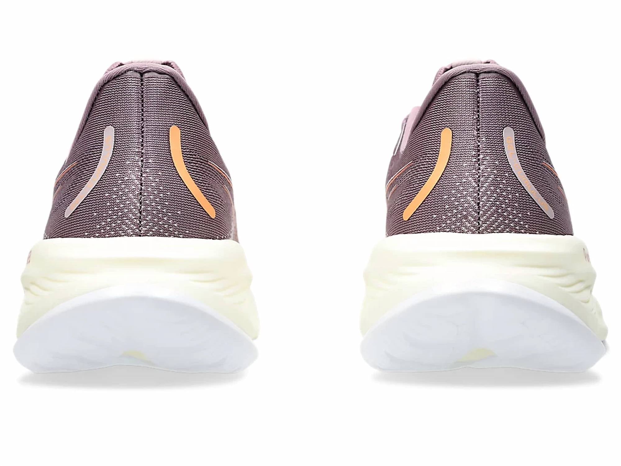 Stylish, comfortable and supportive. These athletic sneakers check all of the boxes. Discover the Women's Gel-Cumulus 26 Running Shoes by ASICS, tailored for ultimate performance in Dusty Mauve/Faded Orange. Crafted with an engineered mesh upper for enhanced breathability and comfort, these shoes boast FF BLAST™ PLUS and PureGEL™ technologies for lightweight cushioning and softer landings. The design incorporates a sockliner produced with a solution dyeing process to minimize environmental impact, while at least 75% of the upper is made with recycled content. Ideal for women seeking a balance of sustainability and comfort, these medium-width athletic shoes offer a round toe shape for an optimal fit.