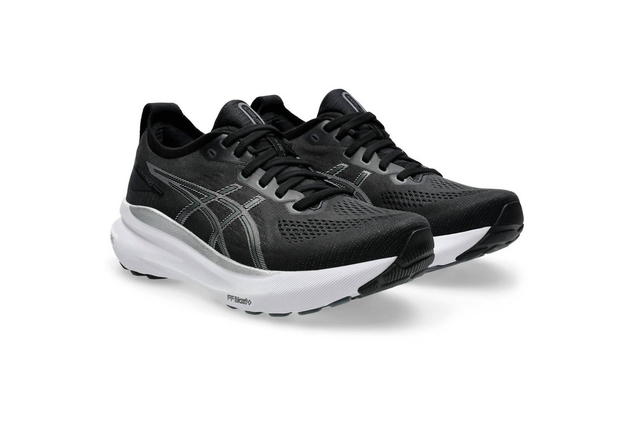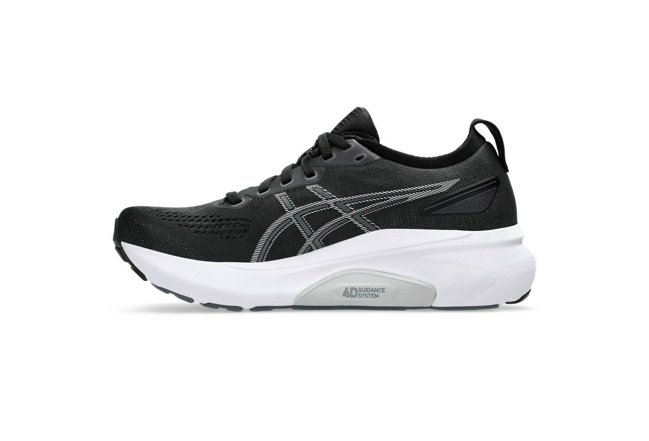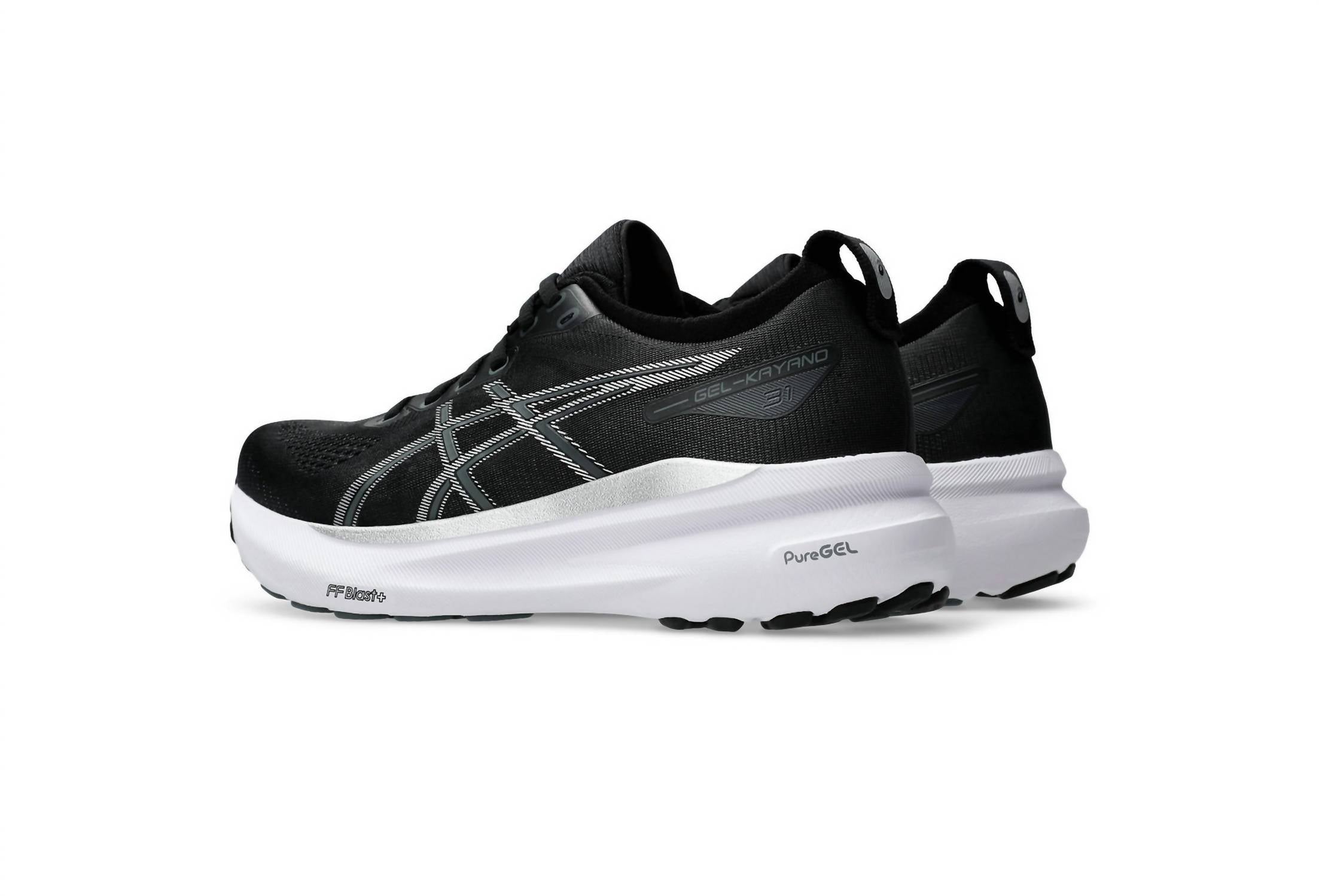 When fashion meets function. Meet the Women's GEL-KAYANO™ 31 Shoes by ASICS, perfect for fitness enthusiasts seeking comfort and stability. With their new engineered upper material, these shoes ensure a stable fit, while the PureGEL™ technology enhances softness and shock absorption to protect your joints. Enjoy the adaptive stability provided by the innovative 4D GUIDANCE SYSTEM™ found in the midsole. Designed with a round toe and chunky heel, these black and pure silver shoes are ideal for spring athleisure and fitness occasions.