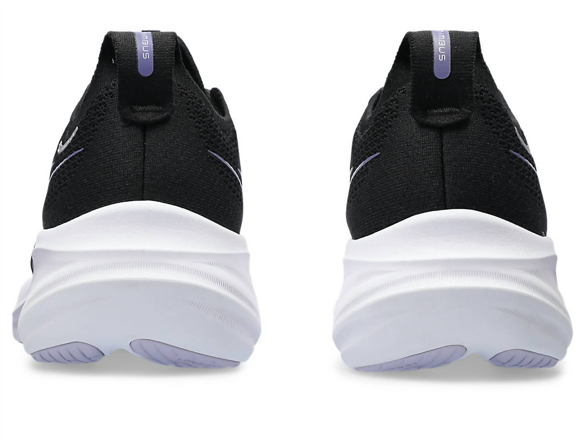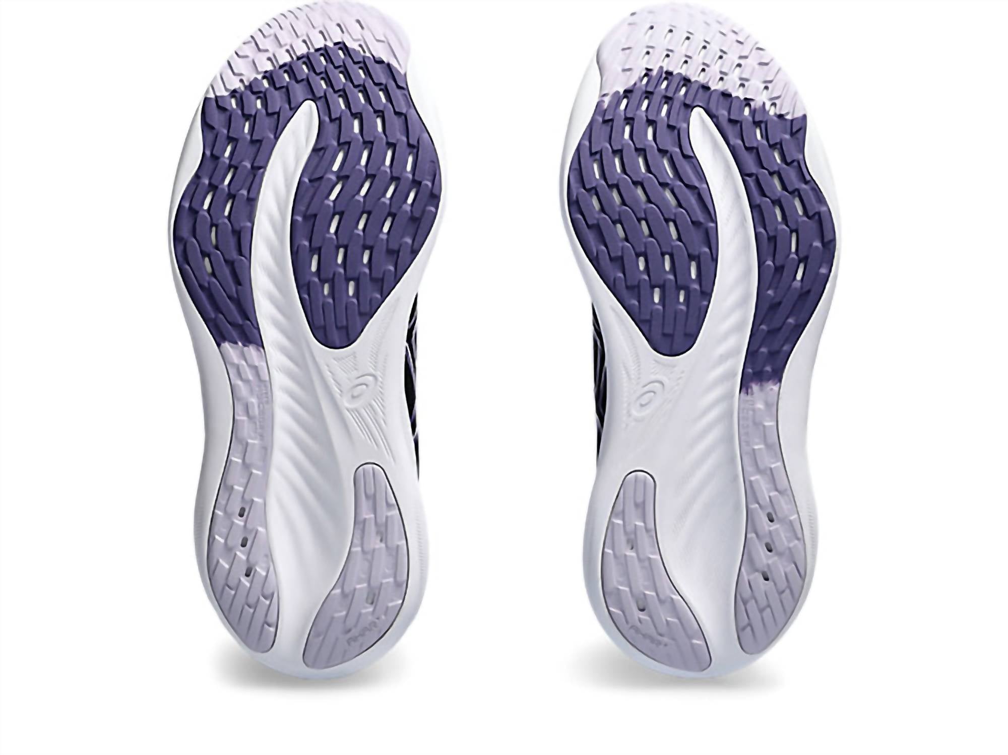 Stylish, comfortable and supportive. These athletic sneakers check all of the boxes. Experience cloud-like comfort with ASICS Women's GEL-NIMBUS™ 26 Shoes. The soft knit upper provides comfort and ventilation, while the FF BLAST™ PLUS ECO cushioning ensures a lighter, eco-friendly experience. The HYBRID ASICSGRIP™ outsole offers durability and grip on various terrains, making these shoes a dependable choice for your next run.