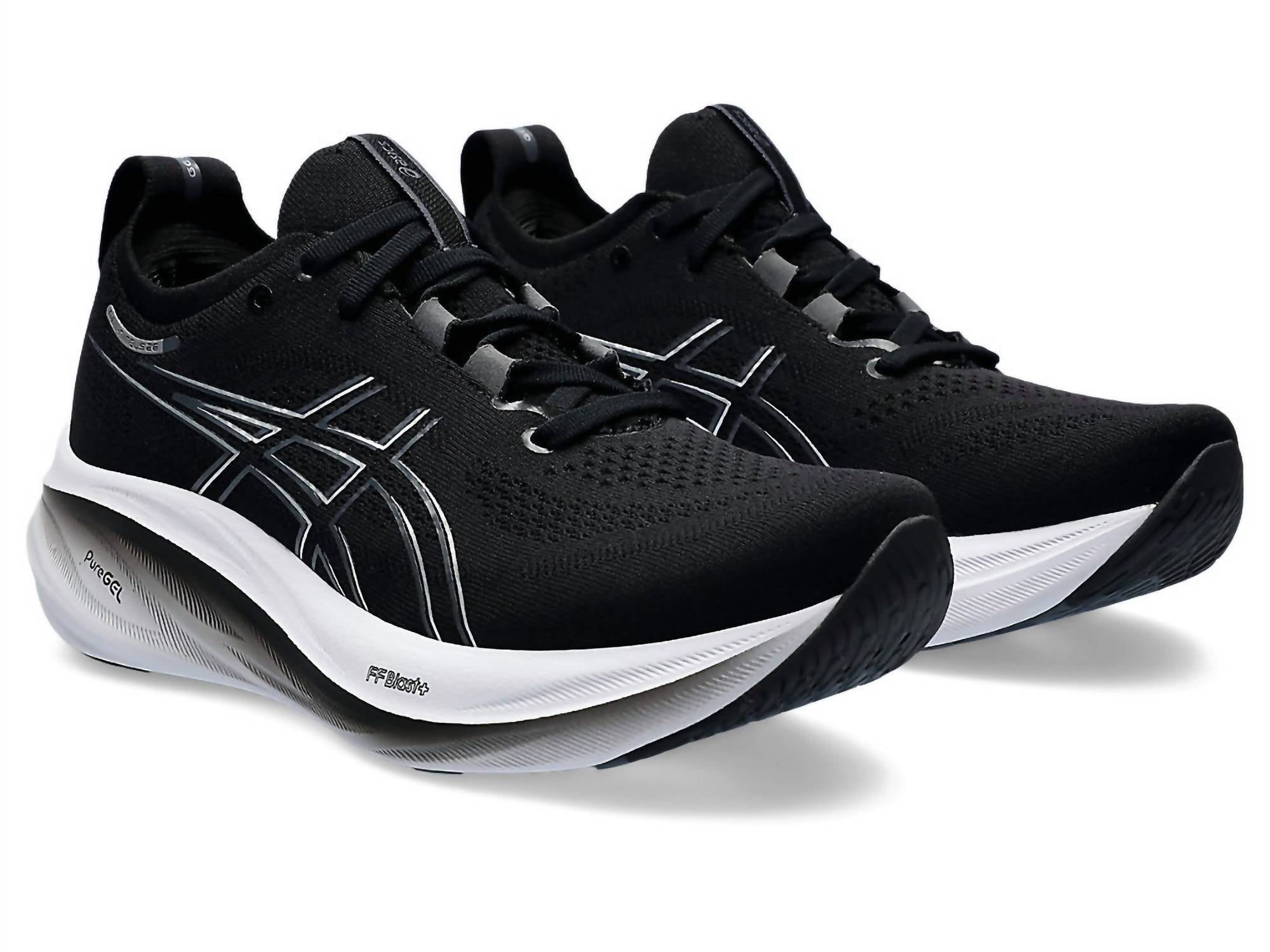 Stylish, comfortable and supportive. These athletic sneakers check all of the boxes. Experience cloud-like comfort with ASICS Women's GEL-NIMBUS™ 26 Shoes. The soft knit upper provides comfort and ventilation, while the FF BLAST™ PLUS ECO cushioning ensures a lighter, eco-friendly experience. The HYBRID ASICSGRIP™ outsole offers durability and grip on various terrains, making these shoes a dependable choice for your next run.