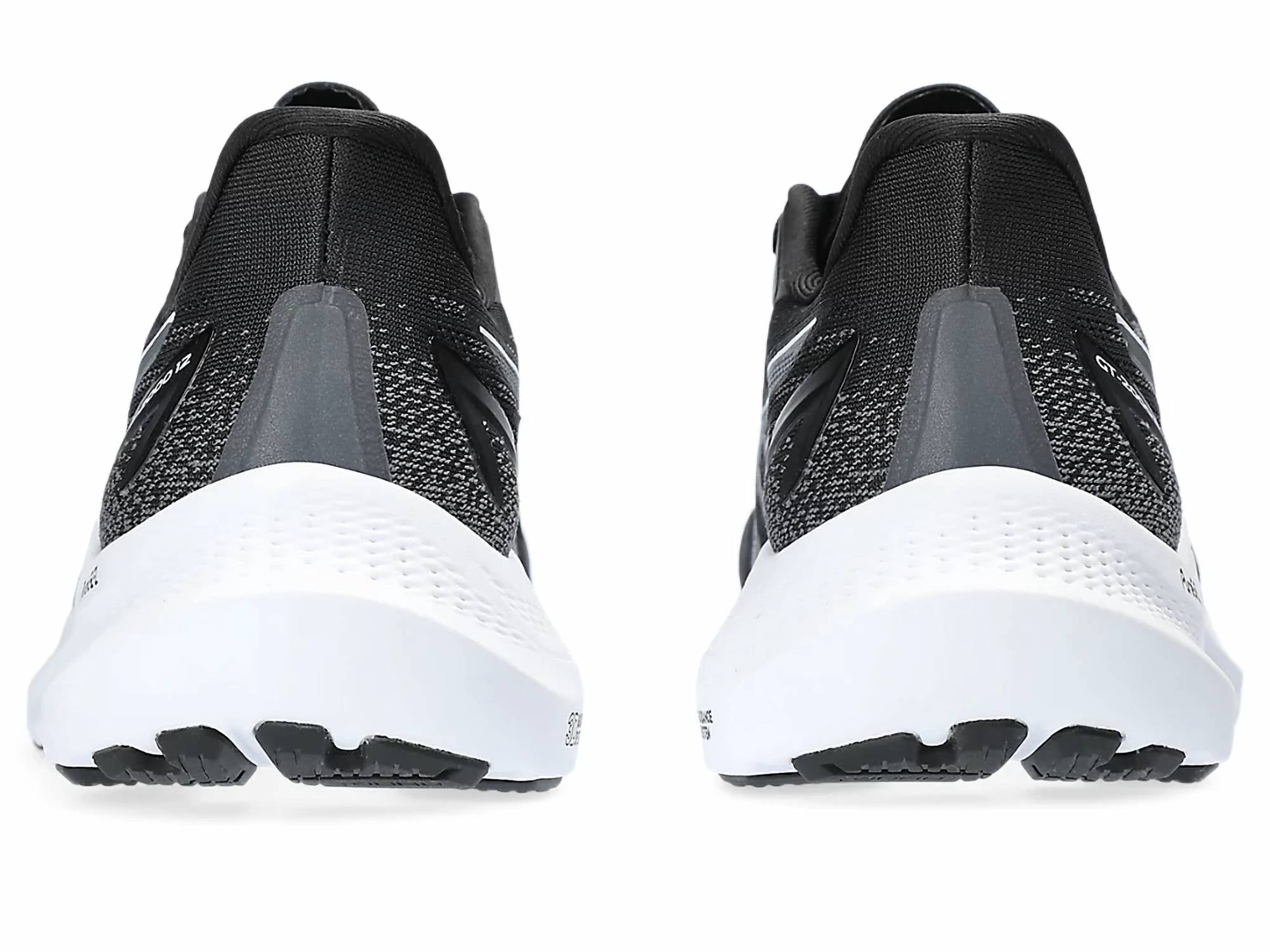 Introducing the Women's GT-2000 12 Running Shoes by ASICS in sophisticated Black/Grey, designed for advanced performance and comfort. Featuring a Jacquard mesh upper, this shoe provides a supportive foothold, while incorporating at least 50% recycled content in its main upper material to reduce waste. Enhanced with rearfoot PureGEL™ technology and FF BLAST™ PLUS cushioning, it ensures lightweight comfort and responsive impact absorption. The AHAR™ LO-HRD outsole and AHARPLUS™ heel plug rubber further enhance durability and wear resistance, making it a perfect choice for avid runners.