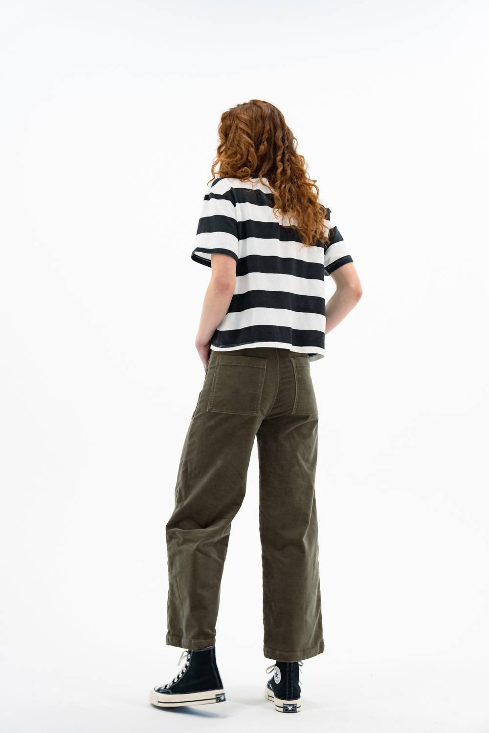 The ASKK NY Shrunken Boy Tee in Blondie is a timeless staple featuring short sleeves and a crew neckline. Crafted from 100% American-knit cotton, it boasts a slightly cropped, boxy fit for laid-back style. Enjoy the soft, broken-in feel of this striped tee designed for effortless wear. Care: Machine wash and tumble dry. Model is 5'9" and wearing size S.