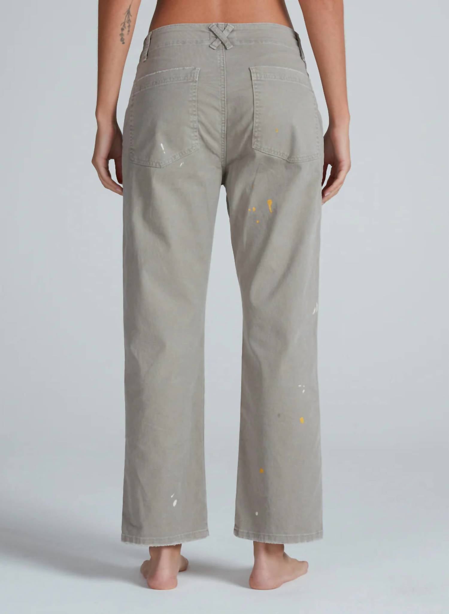 A straightleg pant that workes season after season. Dress these up with your favorite blouse or keep it casual with your go-to tee. Meet the Tomboy Twill Pants by ASKK NY—a perfect blend of style and comfort with a unique Paint Splatter design. These high-rise pants feature a regular fit and straight leg style, crafted from an 8 oz. stretch twill fabric composed of 98% cotton and 2% polyurethane. Made in Los Angeles, these pants boast hand-painted details, a 12" rise, 30" inseam, and 17" leg opening for a laid-back, artisan-inspired look. Closure: Button closure. Care: Machine wash cold separately, do not tumble dry. Model is 5'7" and wears size 25.