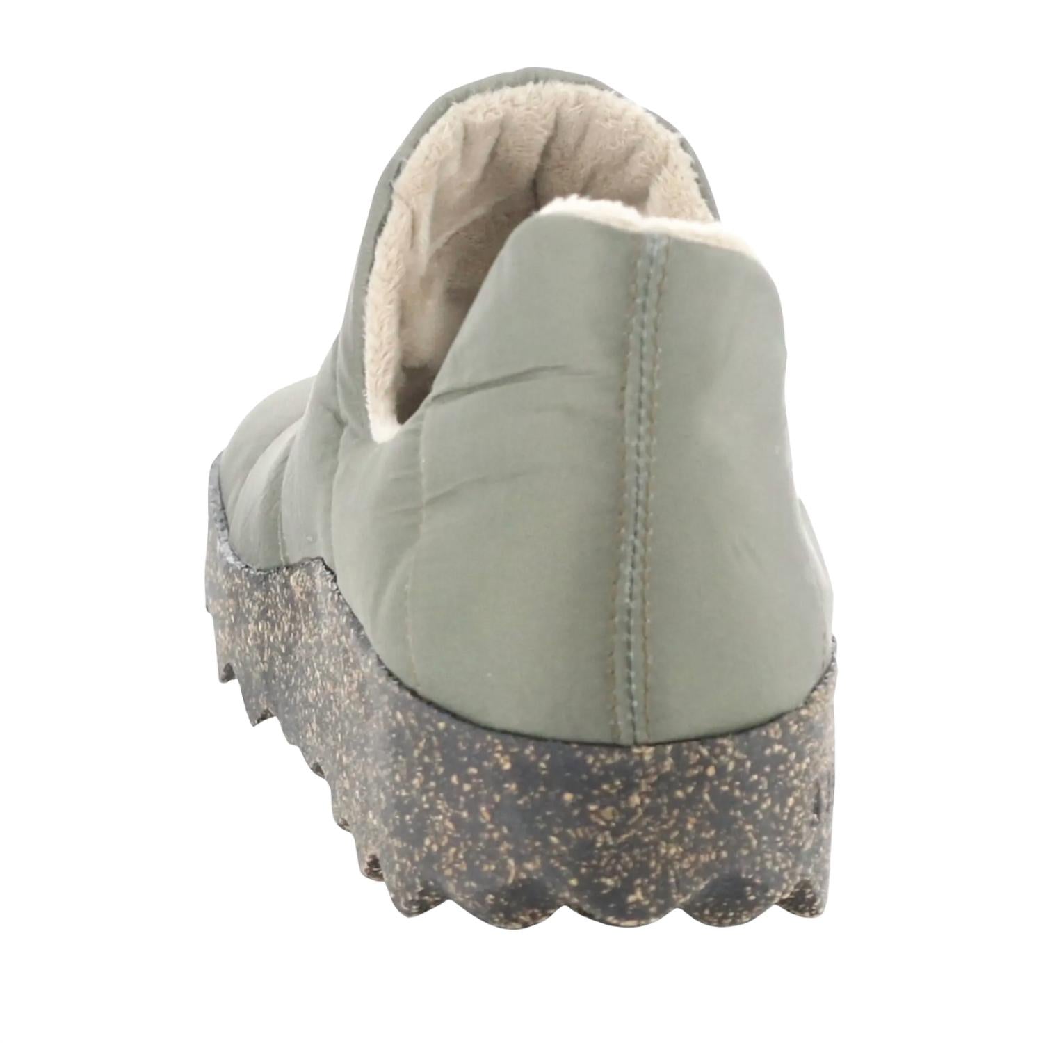 Featuring a flexible and shock-absorbing midsole, a contoured footbed, and a recycled textile design. Faux fur lining. Quilted design. Cork and synthetic sole. Material: Recycled Poly upper. Measurements - 1.5" Heel. 1" Platform. Made in Portugal.
