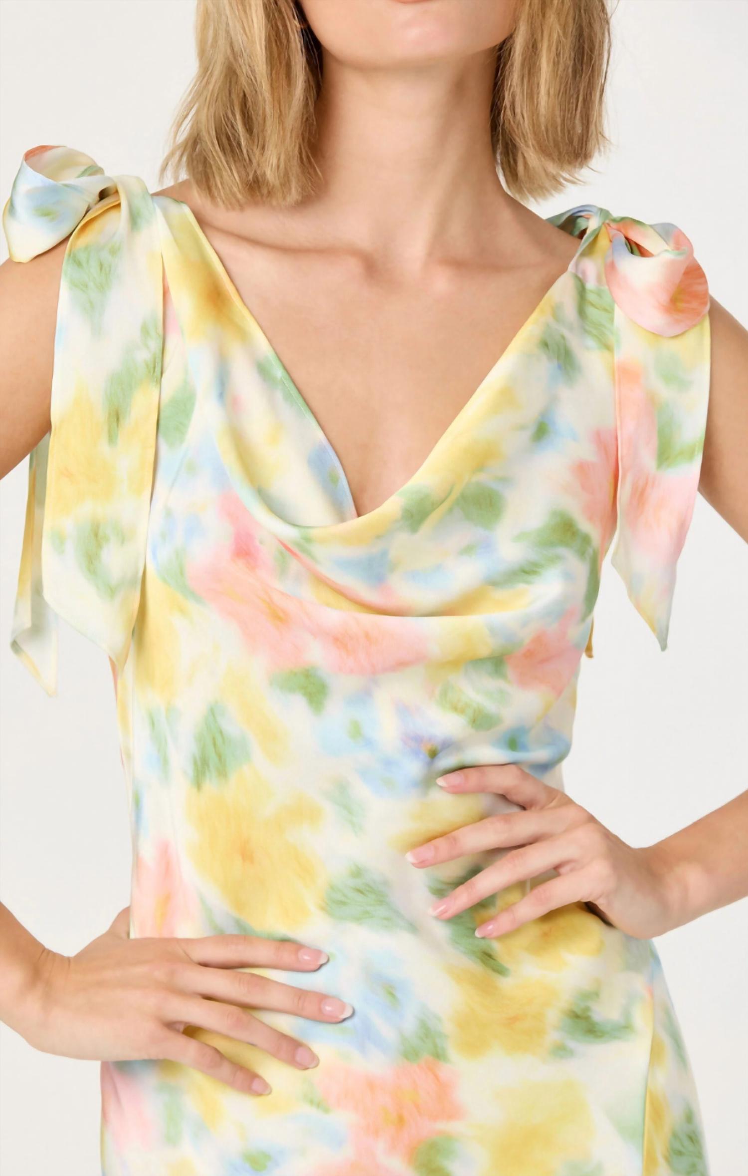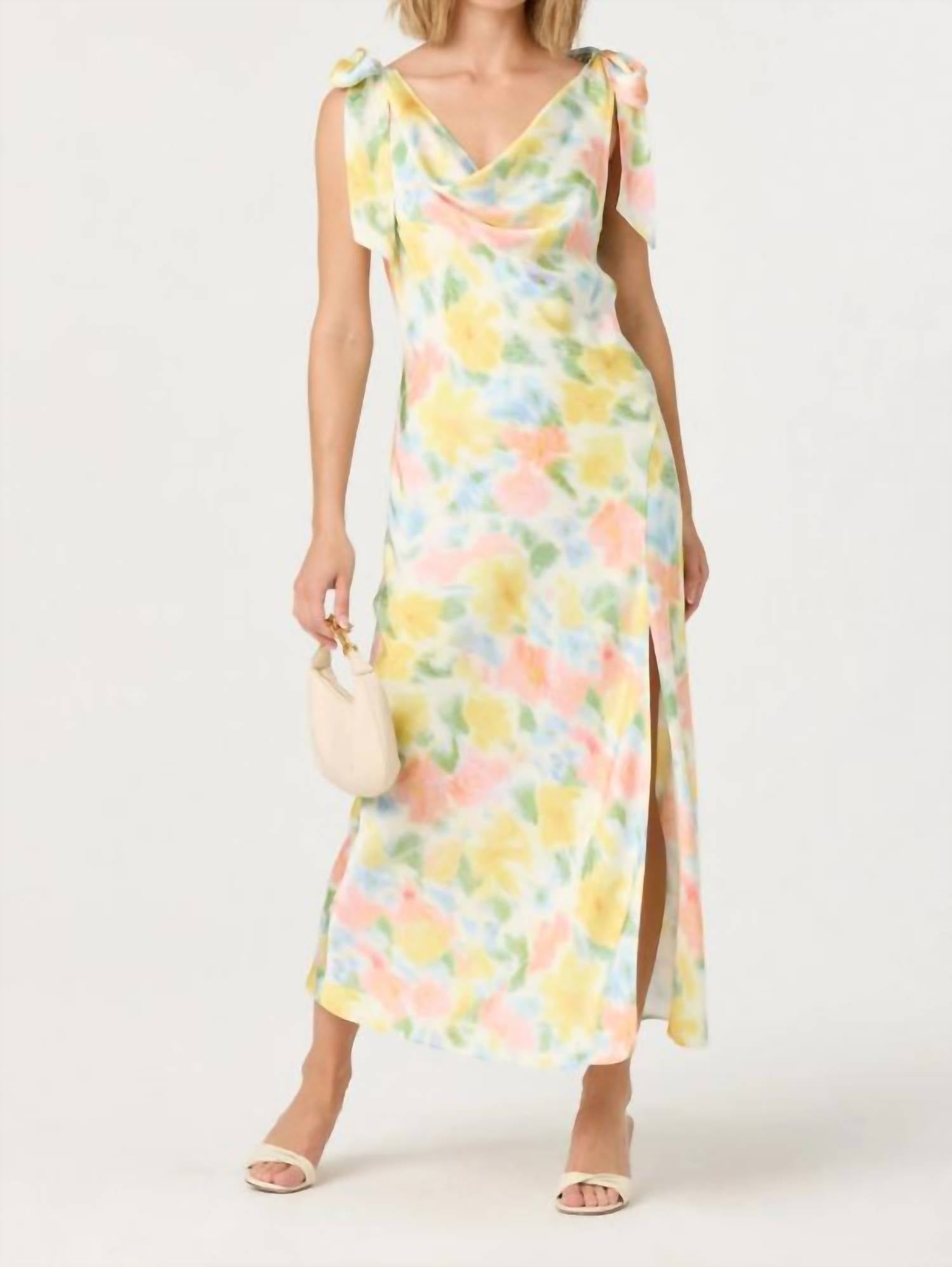 Who doesn't love a good maxi dress? This one you'll be reaching for season after season. Presenting the Allexina Front Thigh Slit Maxi Dress by ASTR, an ideal choice for your next elegant event. This sleeveless dress features a sophisticated cowl neck, adjustable self-tie straps, and a graceful flowy maxi length with chic side slits. Made from 100% Polyester in an exquisite Yellow Water Color, it exudes a delicate gingham pattern that captures the essence of quiet luxury. The dress offers a pull-on closure and is best maintained with dry clean only care.