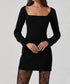 Elevate your evening ensemble with the Calanthe Square Neck Mini Dress by ASTR. This black, long-sleeve dress is designed with button details at the sleeve cuffs and a flattering bodycon silhouette. Crafted from 77% Polyester, 17% Rayon, and 6% Elastane, it features a fully lined interior for added comfort. Closure is a discreet zip with a hook & eye, and care is dry clean only.