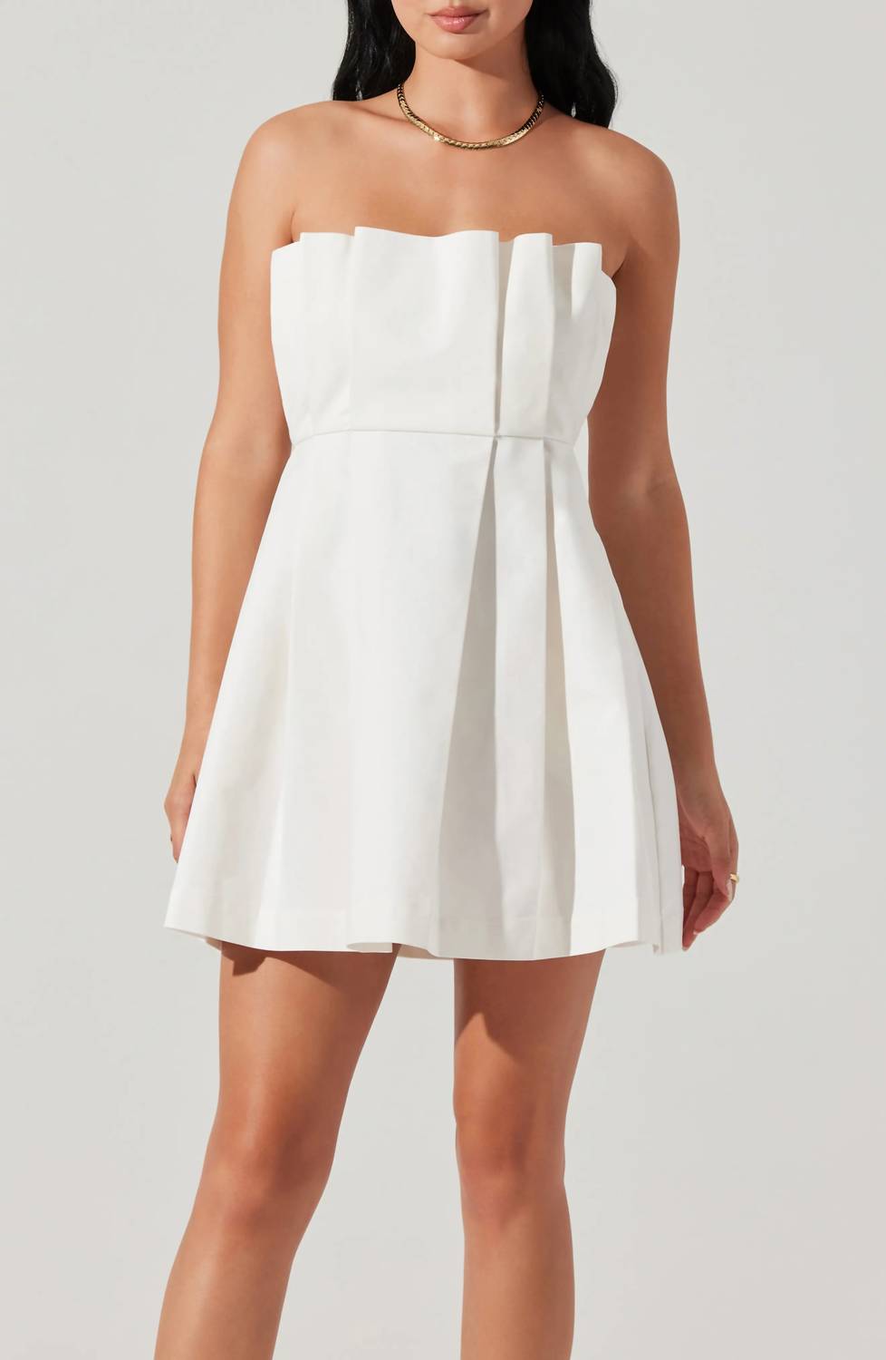 The perfect mini dress for those warmer months. The Clemira Pleated Strapless Cotton Dress by ASTR is a stunning solid white mini dress perfect for summer weddings. Designed with a strapless, off-the-shoulder neckline, this A-line silhouette offers minimalist elegance in 100% cotton. It features a side zipper closure for a seamless fit. Care for this dress with a dry clean to maintain its pristine condition.