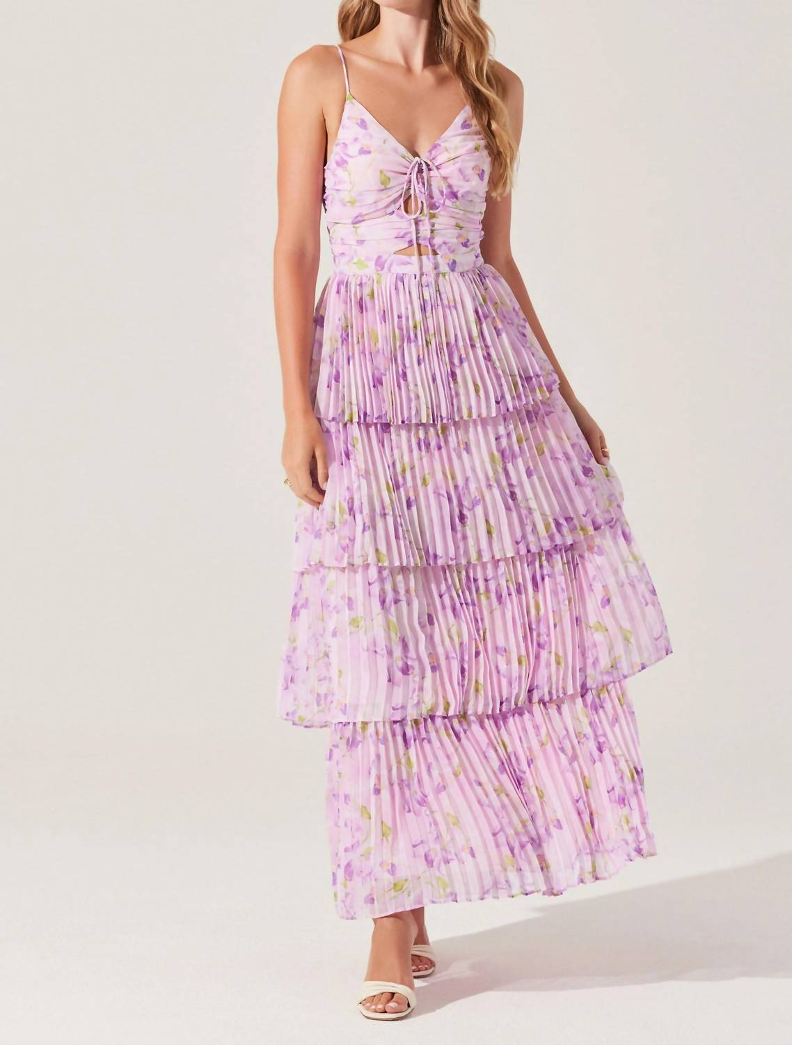 Who doesn't love a good maxi dress? This one you'll be reaching for season after season. Pleated floral maxi dress Small cutouts on front bodice, halter tie Pleated fabrication throughout Adjustable spaghetti straps Concealed zipper closure on back Fully lined Dry clean only Self: 100% Polyester / Lining: 100% Rayon