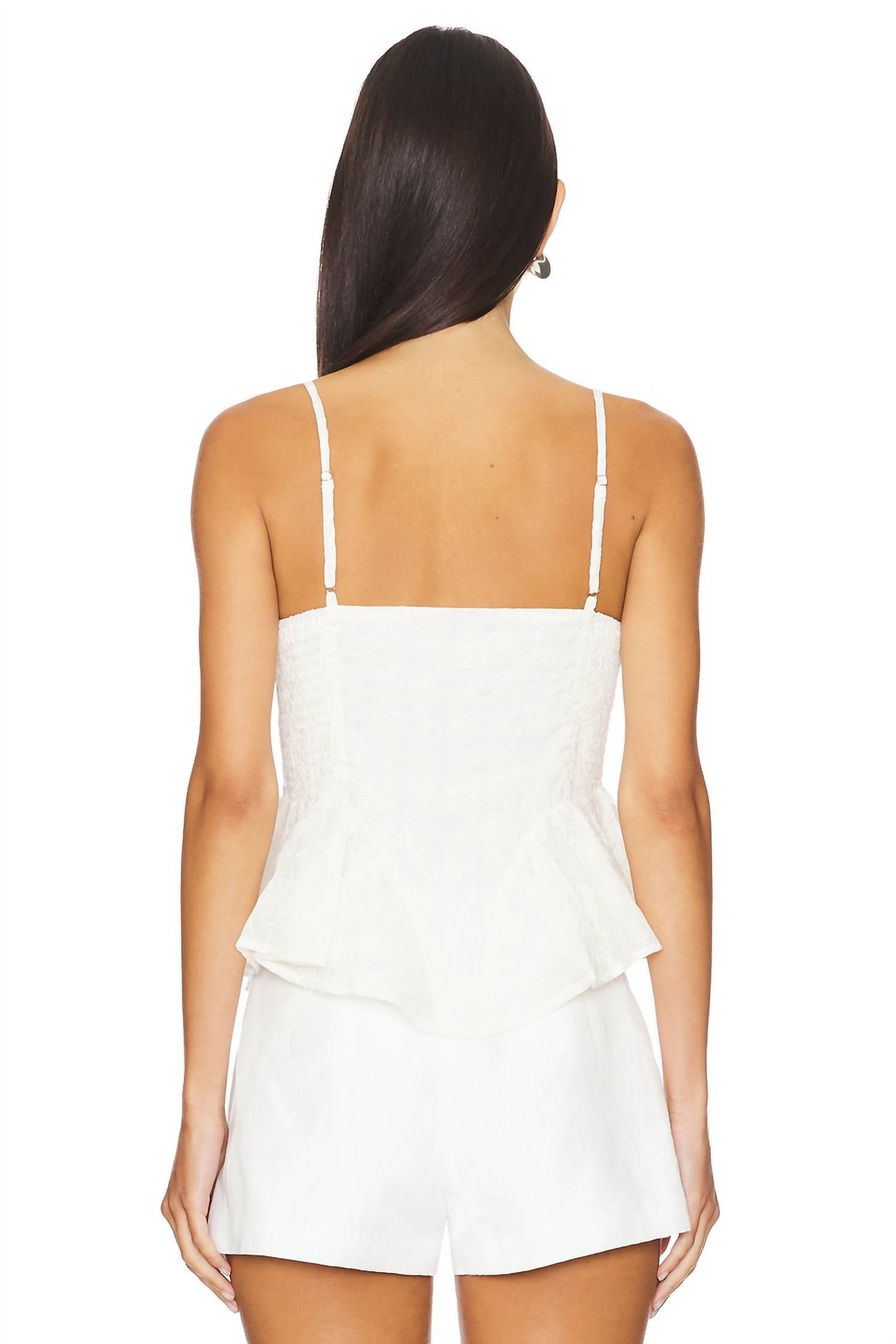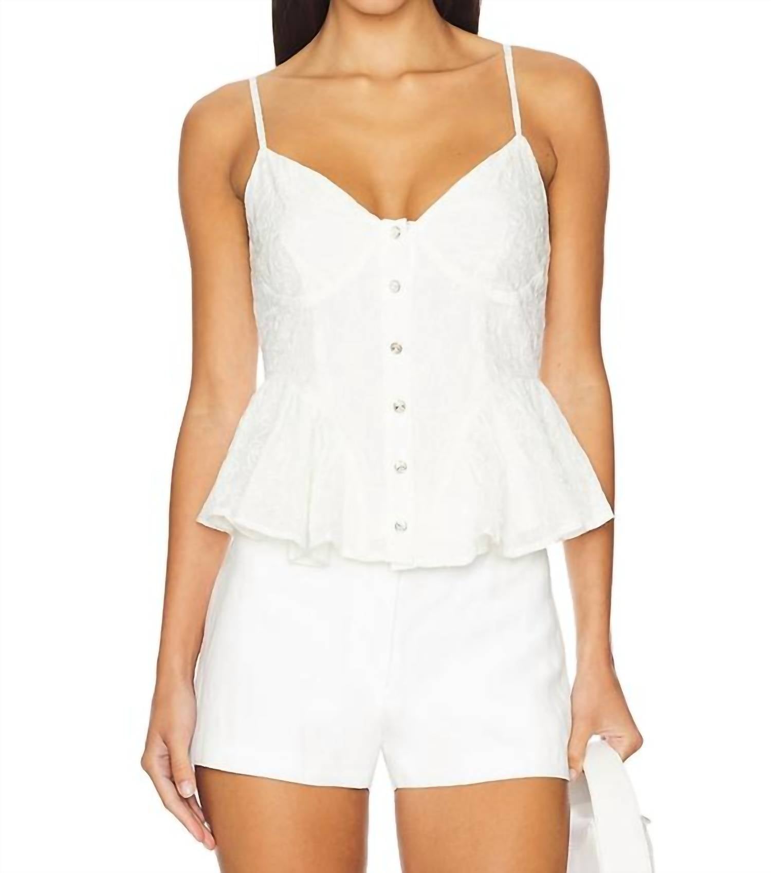 A timeless blouse that will never go out of style. The Emmy Top by ASTR is a delicate piece that exudes femininity with its floral pattern and classic white color. Crafted from polyester, this blouse features a flattering V-neckline and effortlessly stylish spaghetti straps. Closure: Button closure. Perfect for pairing with your favorite bottoms, this piece is a must-have addition to any wardrobe.