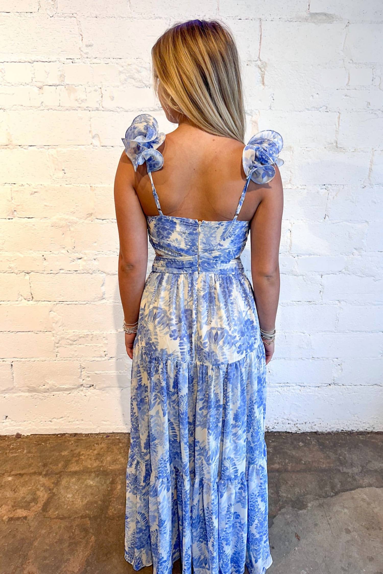 Who doesn't love a good maxi dress? This one you'll be reaching for season after season. Elevate your summer wardrobe with the Fritillaria Floral Maxi Dress by ASTR, featuring a soft floral pattern in vibrant blue. This sleeveless dress is crafted from 100% polyester and boasts a flattering A-line silhouette with a maxi length that exudes elegance. With adjustable straps and a zip closure, it offers a tailored fit perfect for various occasions, from garden strolls to summer events. Care instructions: Dry clean only. Model Maci is wearing a size small.