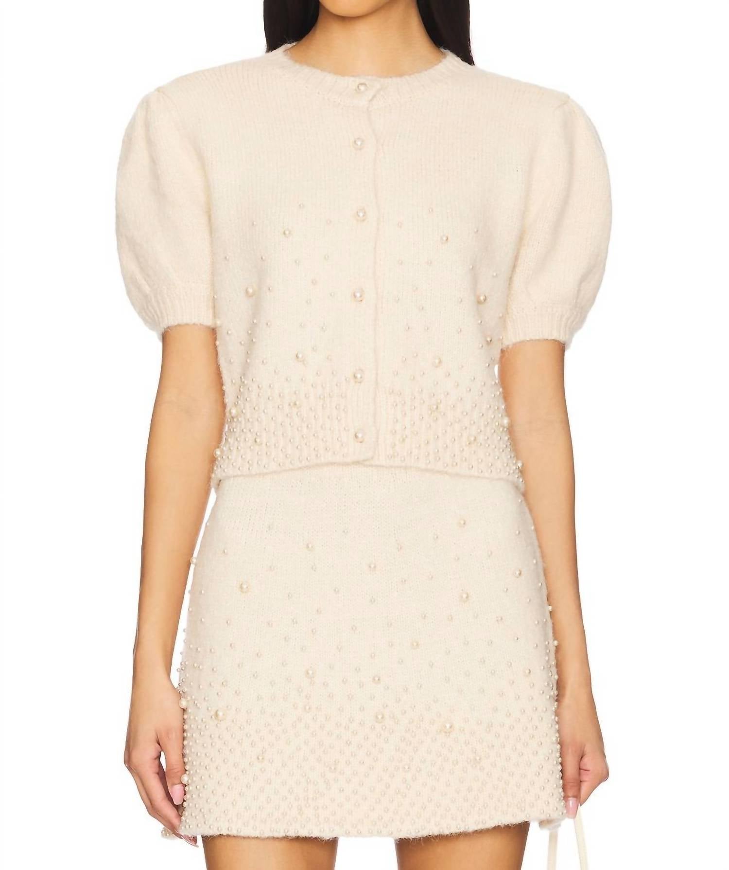 This cardigan will be a sweater-rotation favorite. Introducing the Joly Pearl Embellished Cardigan by ASTR, a statement piece in Soft Blush perfect for elevating any occasion. Crafted with short puff sleeves, this cardigan exquisitely features ombre placed pearls across its textured fabric. Composition: 50% Nylon, 20% Acrylic, 16% Polyester, 12% Wool, 2% Elastane. Closure: Button closure. Care: Dry clean only. This cardigan embraces the trend of workwear while being an elegant choice for engagement events.
