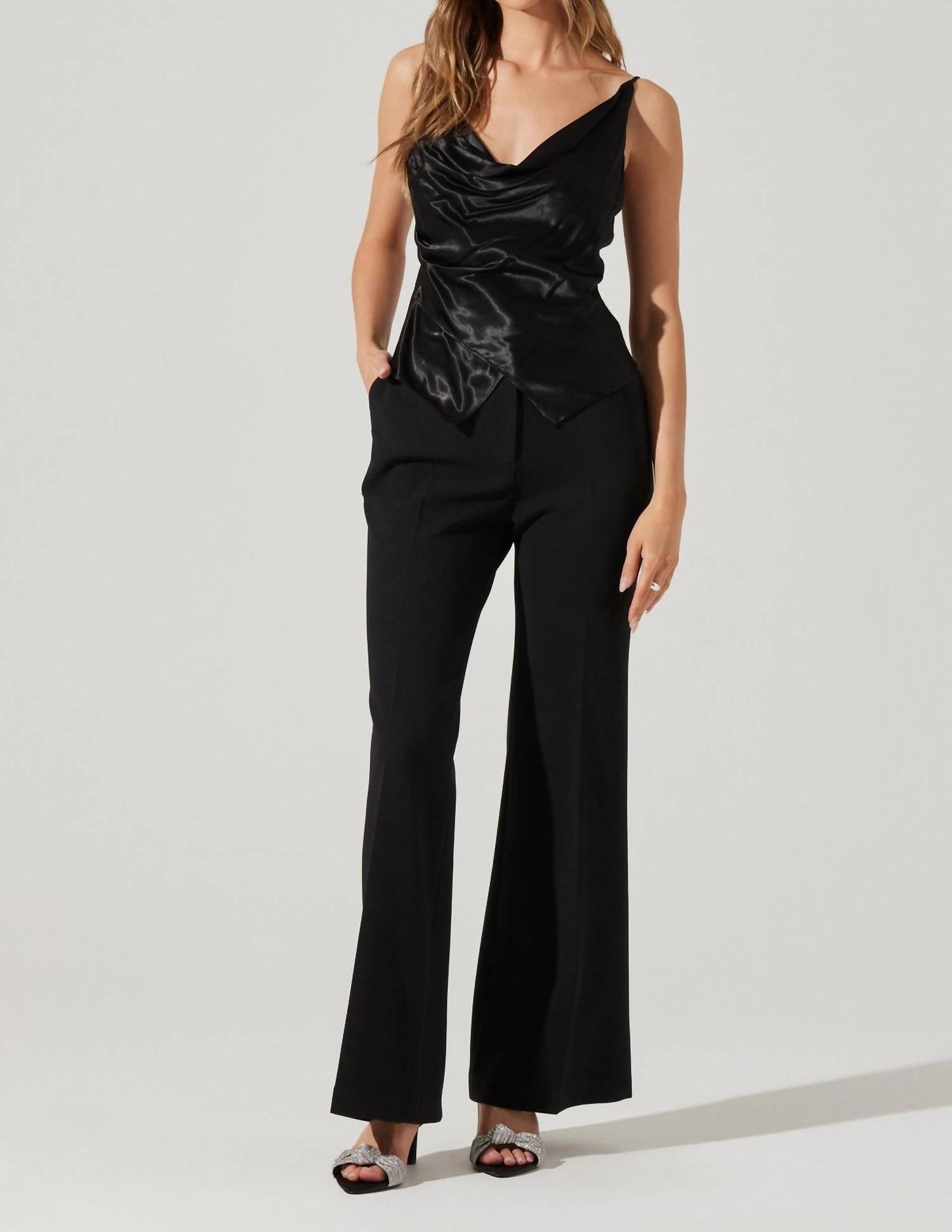 Stay on trend with these stylish boot cut pants that are fit to perfection. The perfect combination of comfort and fashion, you'll be grabbing for these all season long! Introducing the Lawson Flared Dress Pants by ASTR, perfect for elevating your professional wardrobe with a minimalist touch. These classic fit pants in solid black offer a high-rise waist with an 11" rise and a 30.5" inseam. They're constructed from 74% polyester, 20% rayon, and 6% elastane, complete with 100% cotton pockets and a sophisticated hook and eye closure. Designed for women, these flared leg pants are best maintained through dry cleaning.