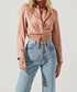 Introducing the Perry Satin Wrap Front Tie Waist Top by ASTR, a chic addition to your spring wardrobe. Featuring long sleeves and a plunge neckline with collar, this solid blush pink top is composed of 100% polyester and boasts a luxurious satin feel. Designed for a perfect fit with an elastic band in the back, it’s finished with a side zipper closure. Care for this stylish piece by dry cleaning only, and pair it with high-waisted bottoms for a sophisticated look.