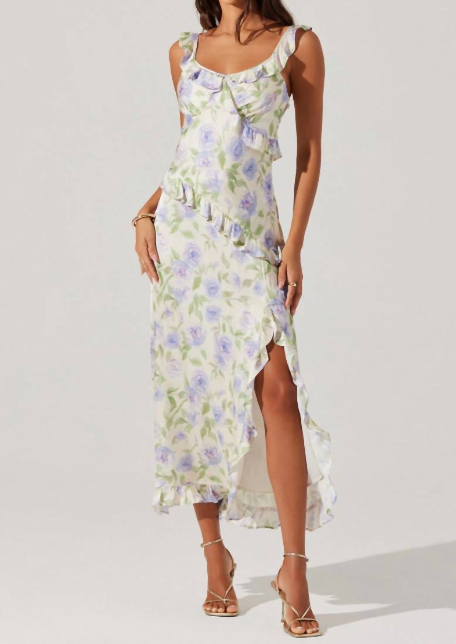 A midi dress so versatile, your options for wearing it are endless. Introducing the Rosalina Dress by ASTR, a captivating piece in a cream lavender floral pattern that embodies Boho Chic style. With cap sleeves and a graceful A-line silhouette, this midi dress is crafted from comfortable viscose, perfect for a summer cocktail party or Thanksgiving gathering. The scoopneck design is accompanied by a convenient side zipper closure. Care instructions: Dry clean only.