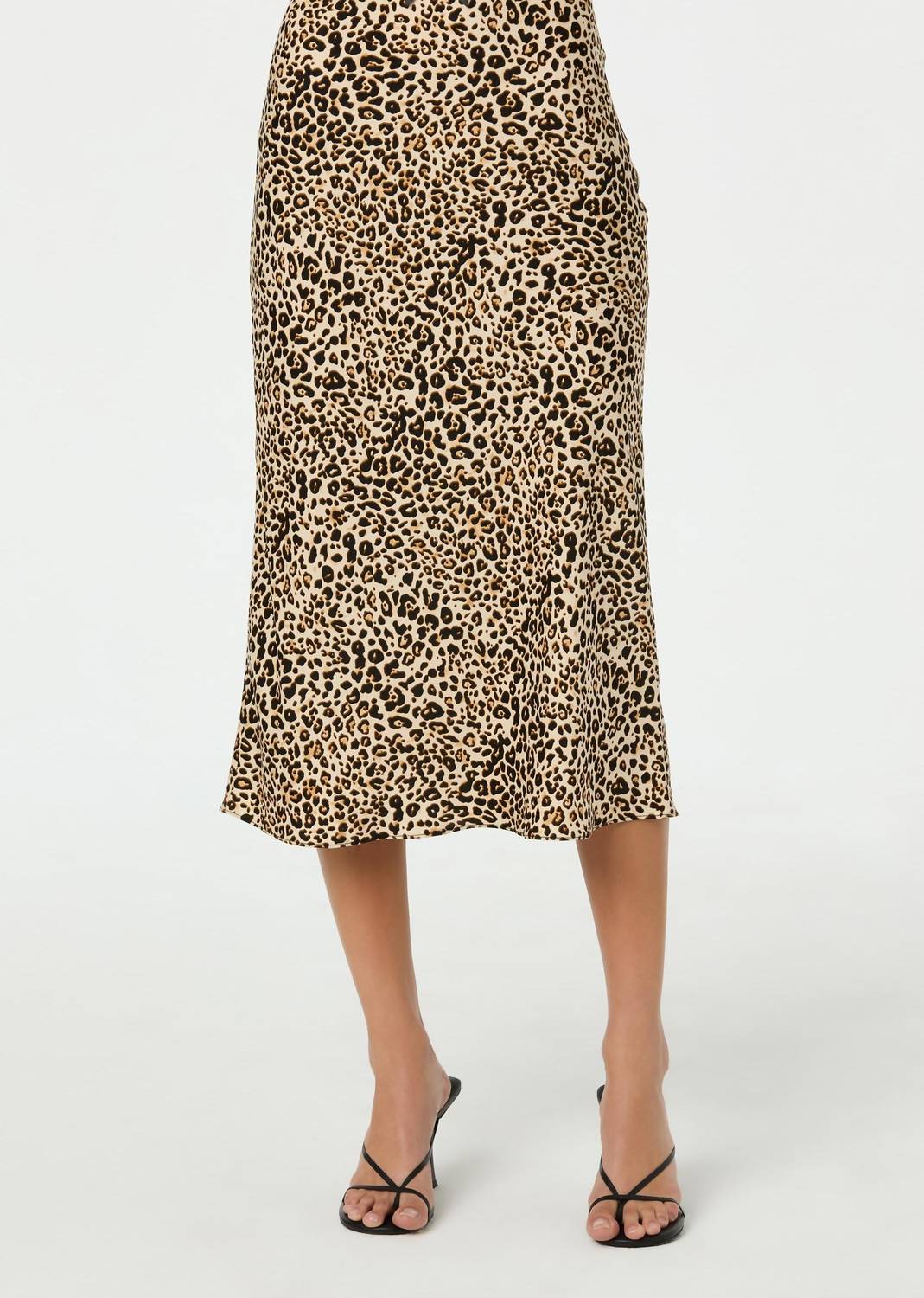 The midi length skirt is here to stay and we especially love this style. Embrace your wild side with the Satin Aline Skirt by ASTR in a bold leopard print. This midi-length skirt, crafted from luxurious polyester satin, combines elegance and playfulness, making it ideal for various occasions. Designed with a practical pull-on closure, it features an A-line silhouette that flatters every figure. Care: Dry clean only. Perfect for summer and fitting seamlessly into a maximalist wardrobe, this piece is a versatile must-have.