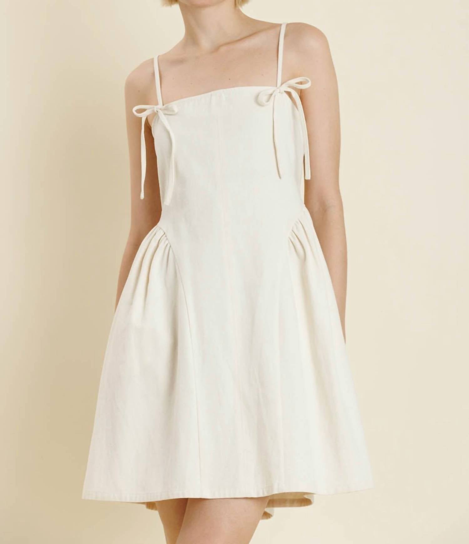 A short and breezy dress for those warmer days. Introducing the Stevie Bow Trim Mini Dress by Aureum, a delicate cream piece crafted for minimalist summer elegance. Designed with spaghetti straps and a flattering squareneck, this mini dress boasts a solid 100% cotton composition that's both lightweight and breathable. Closure is achieved with charming tie details, enhancing its playful yet polished aesthetic. Care for this versatile dress with machine wash and tumble dry settings, ensuring it's ready for your next holiday party or casual outing.