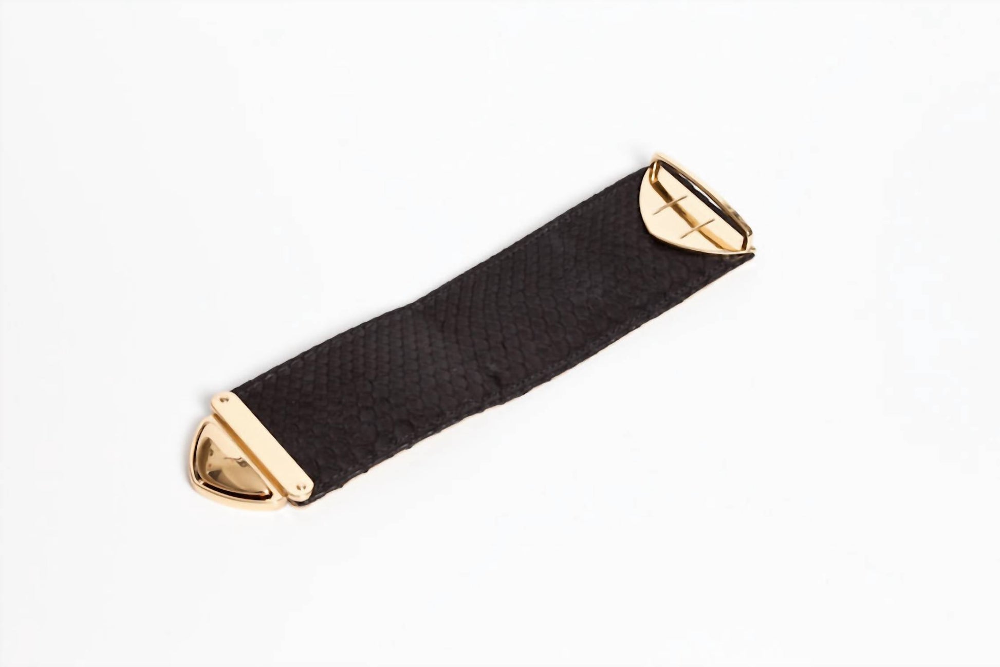 Stylish accessory perfect for any occasion. Crafted from genuine leather. Features a luxurious gold-plated buckle. Proudly made in US. Fine piece is a testament to quality and sophisticated design. Available in a classic black hue, an elegant addition to any collection.