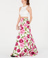 Approx. 61-3/4" long from center back to hem. Length is based on size 9/10 and varies 3/8" between sizes|Halter neckline|Back zipper closure at both pieces|Two-piece design: lace crop top with molded cups & floral print skirt with on-seam pockets; crinoline trim
