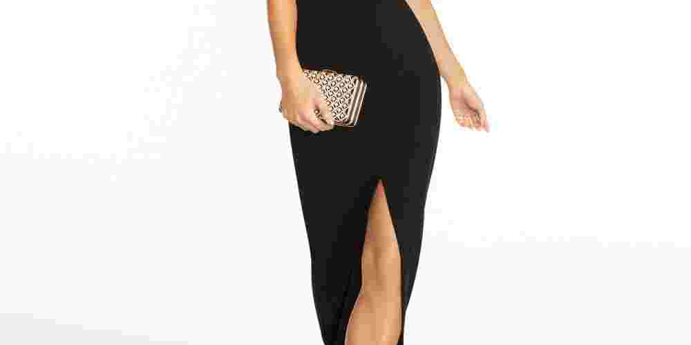 Approx. 47-3/4 long from center back neck to hem. Length varies 1/4 between sizes|Deep V-neck|Back zipper closure|Bra cups; front slit; open back|IMPORTANT NOTE; This item arrives with a return tag attached and instructions for removal. Once the tag is removed from the dress; this item cannot be returned.