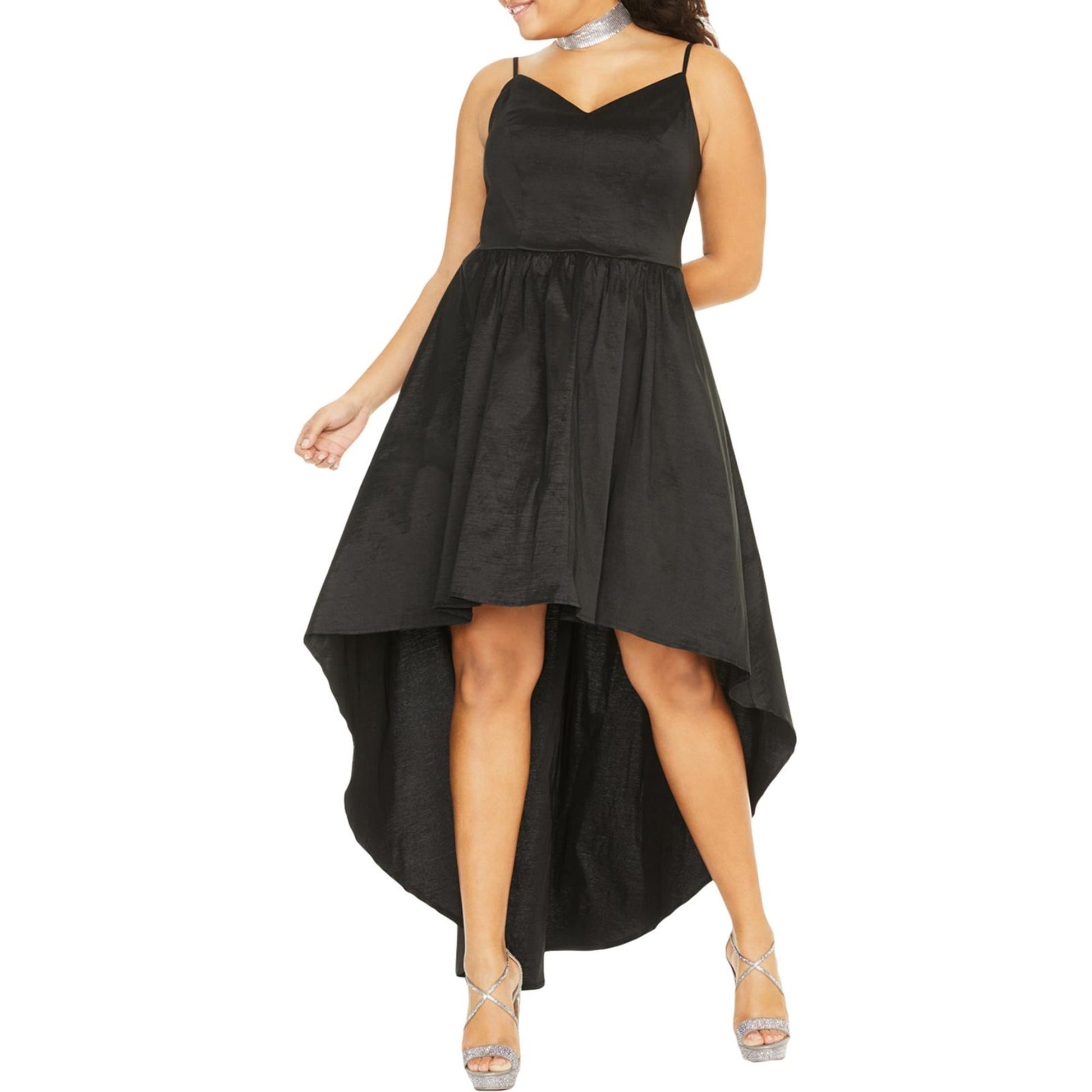 Approx. 40-1/2 long|V-neck; fit & flare silhouette|Back zipper closure|High-low hem|Not sure you found the perfect dress? RETURN POLICY; Dresses must be returned within 60 days of purchase. Dress must be in saleable condition with tags still attached. Items are not returnable if worn; altered or tags removed.